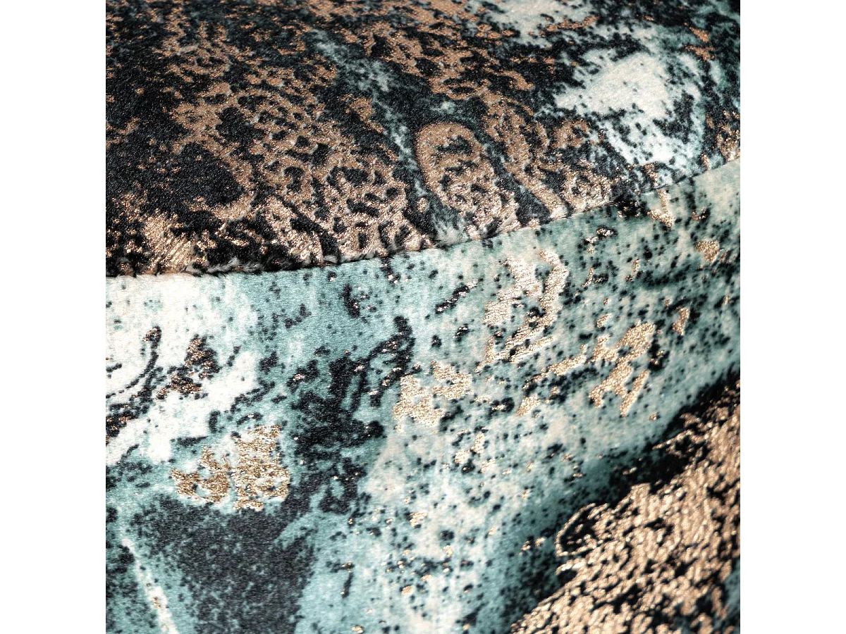 Tabouret semi artisanal motif floral ZAPA 35x35x46 vert foncé et or