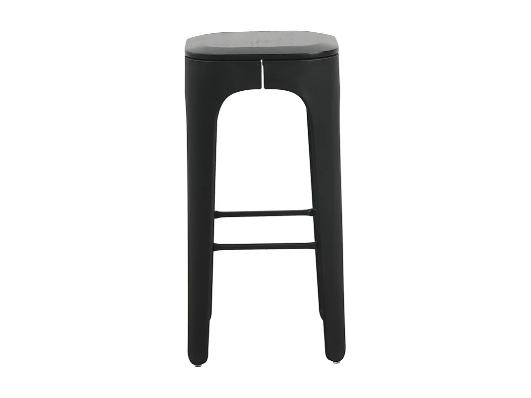 Tabouret structure noire en résine, assise en bois foncé - Hauteur 72,5 cm
