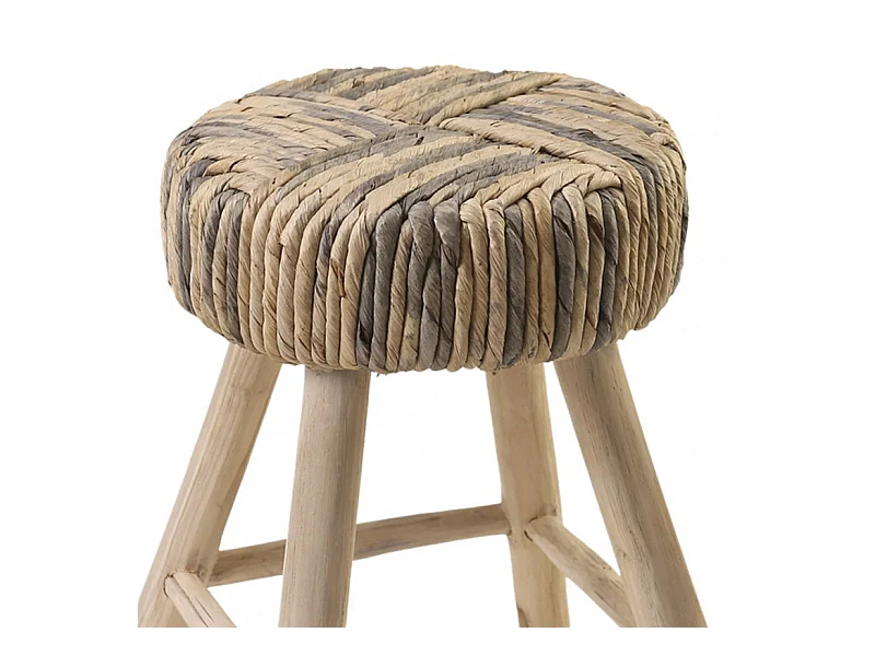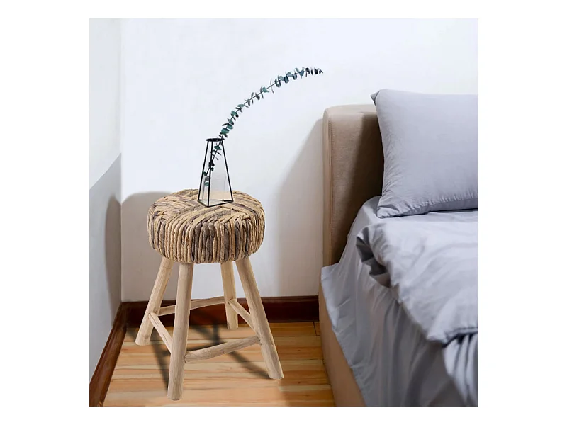 Tabouret/Table d'appoint artisanal en bois de teck et tressage - TRESA