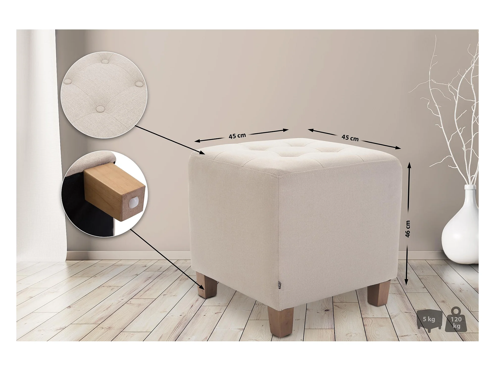 Tabouret bas en tissu effet velours texturé beige et bois clair massif H46 cm GUESTA