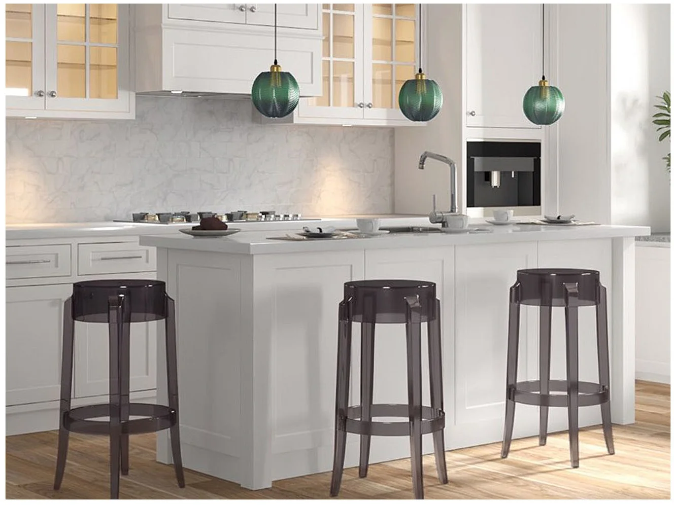 Tabouret design en polycarbonate transparent LOUIVA - Assise 47, 65 ou 75cm-Transparent-Hauteur 75 cm