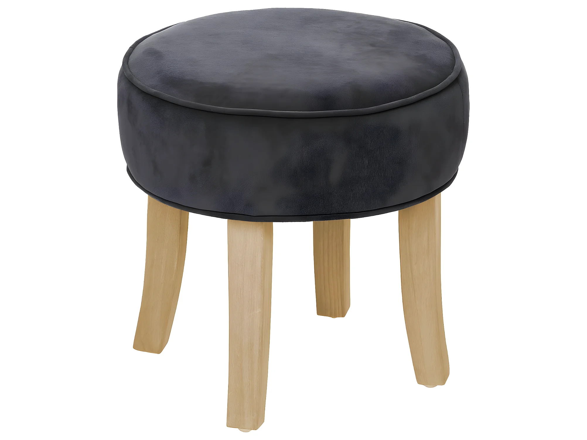 Tabouret Velours Gris foncé et Pieds en Bois naturel 35 x 35 cm