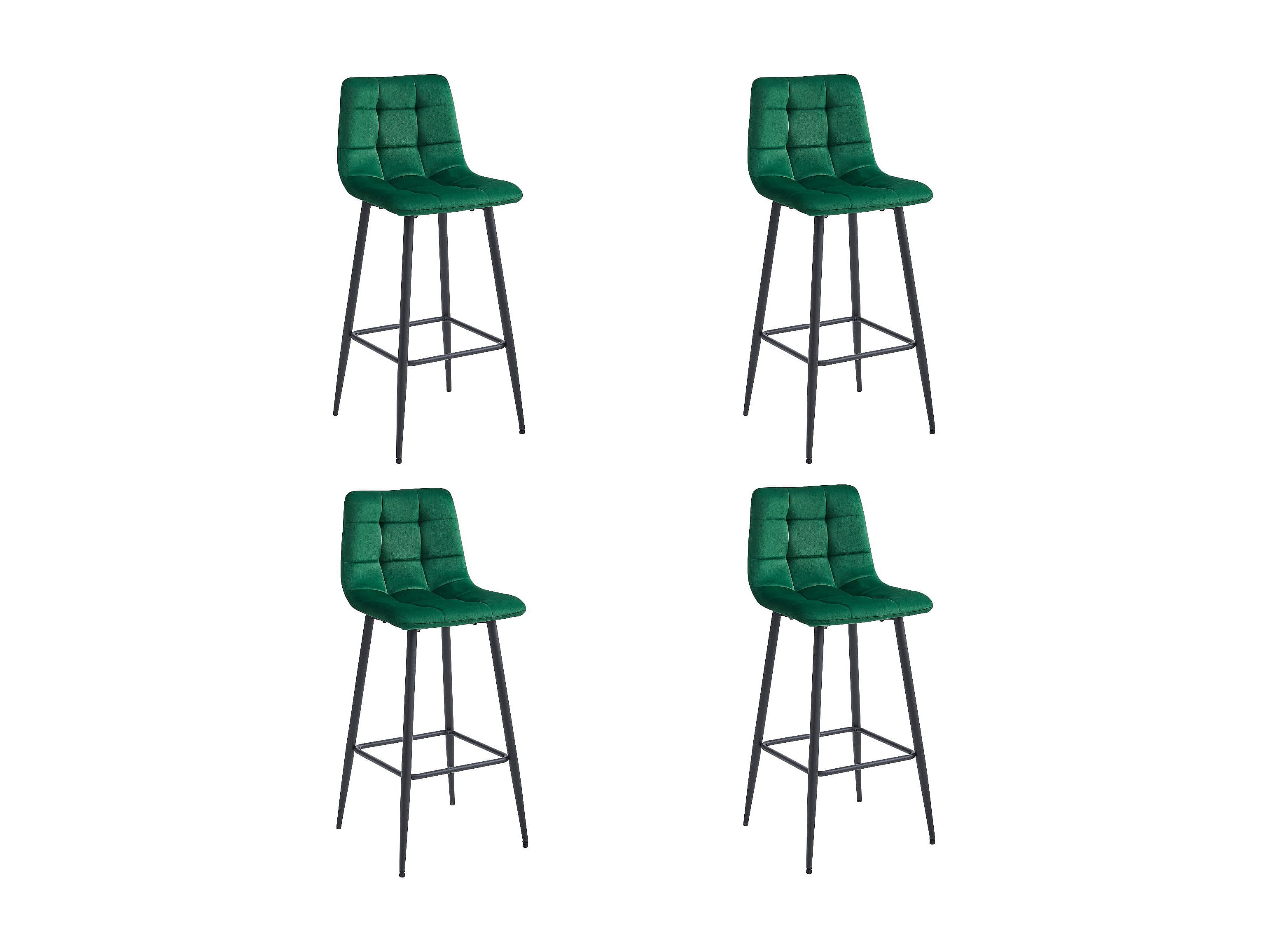 Tabourets bar Valora TEOTO velours vert foncé pieds acier noir x4