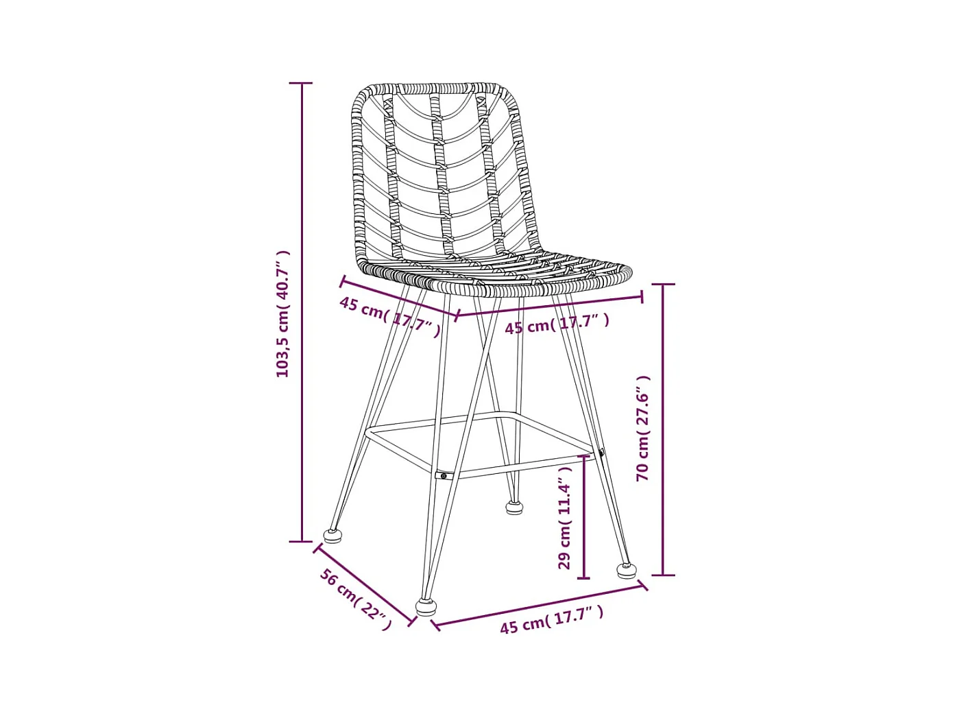 Tabourets de bar 2 pcs 45x56x103,5 Résine tressée et acier