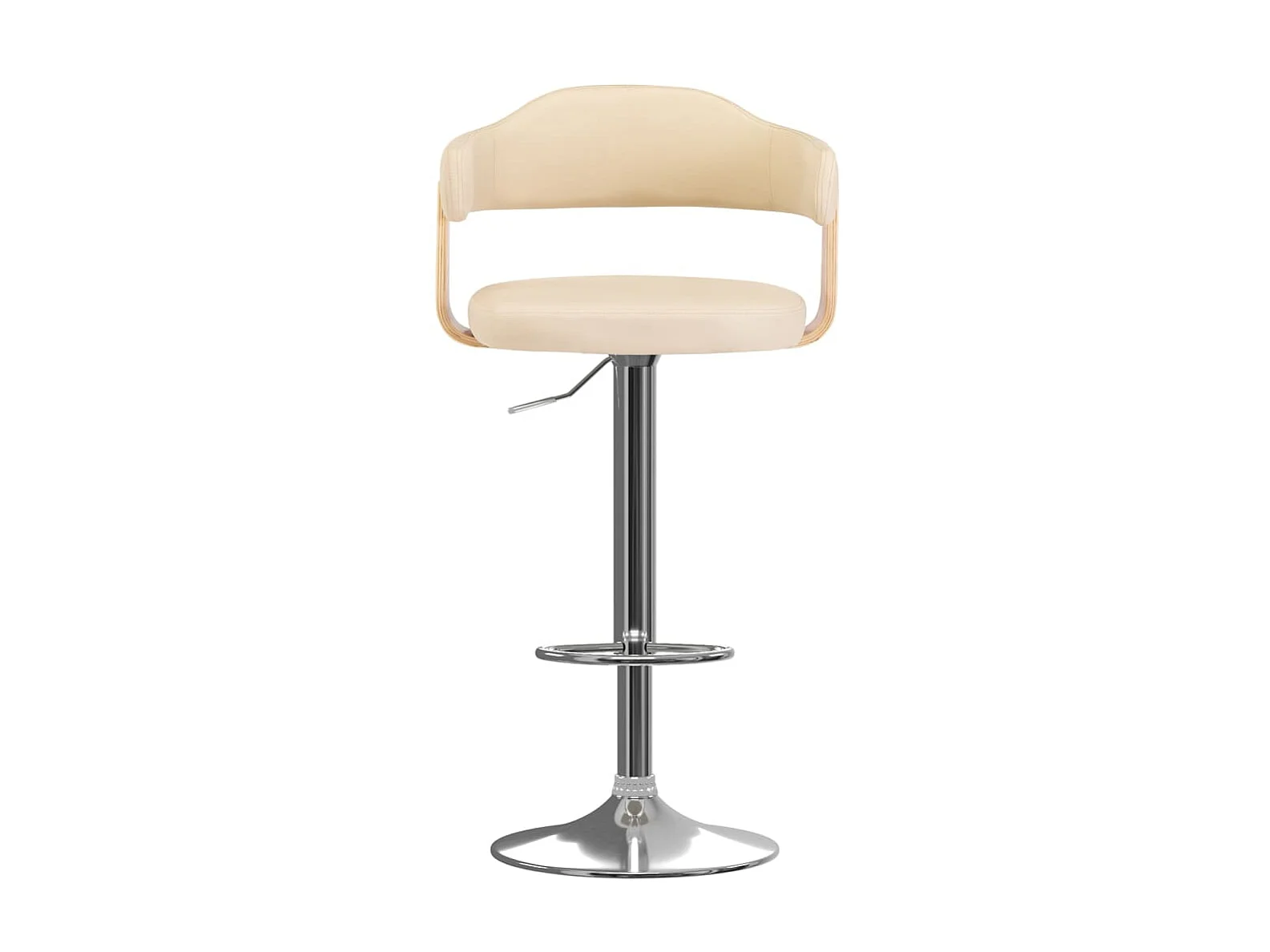 Tabourets de bar 2 pcs Crème Bois courbé et similicuir 4