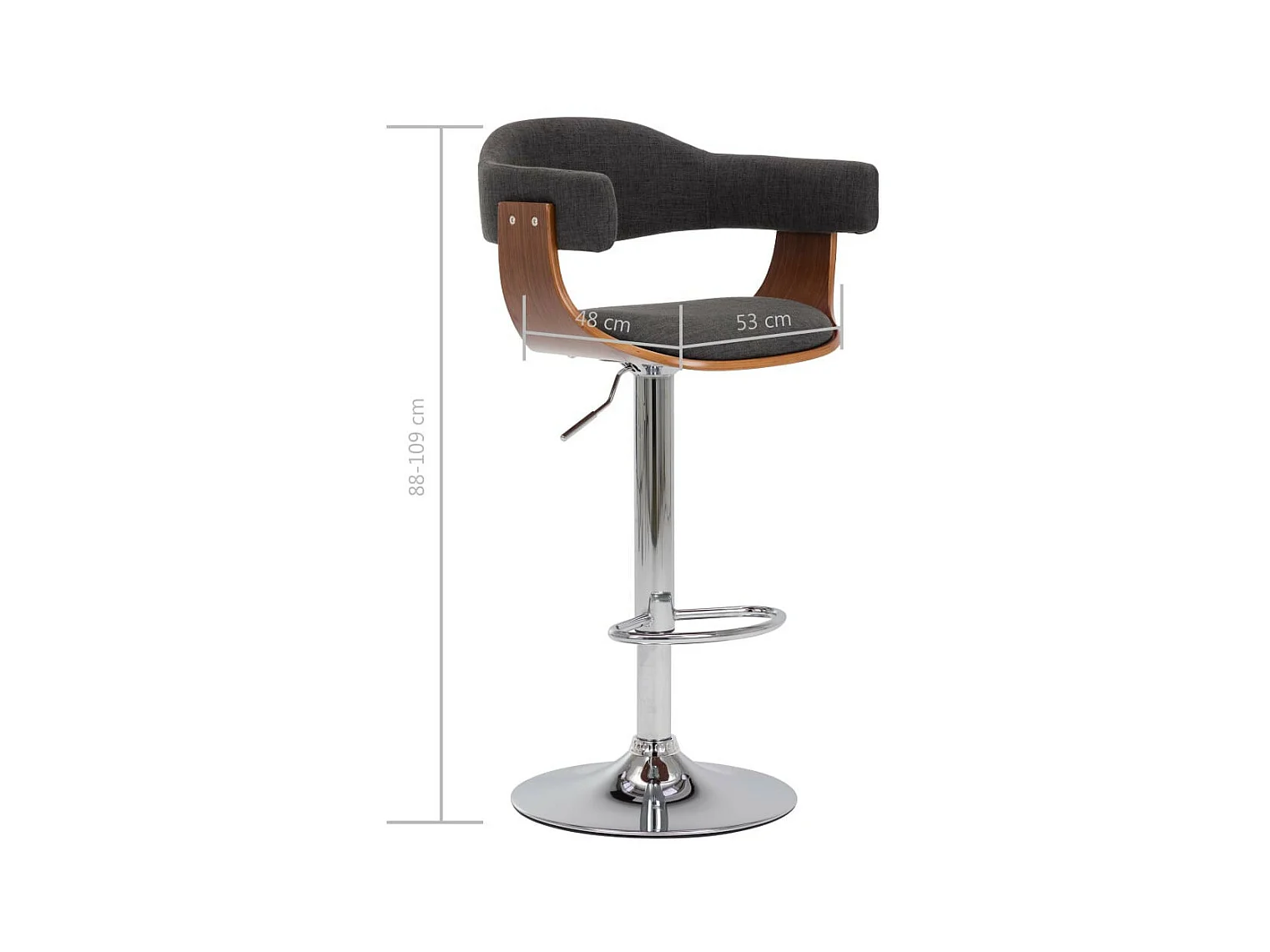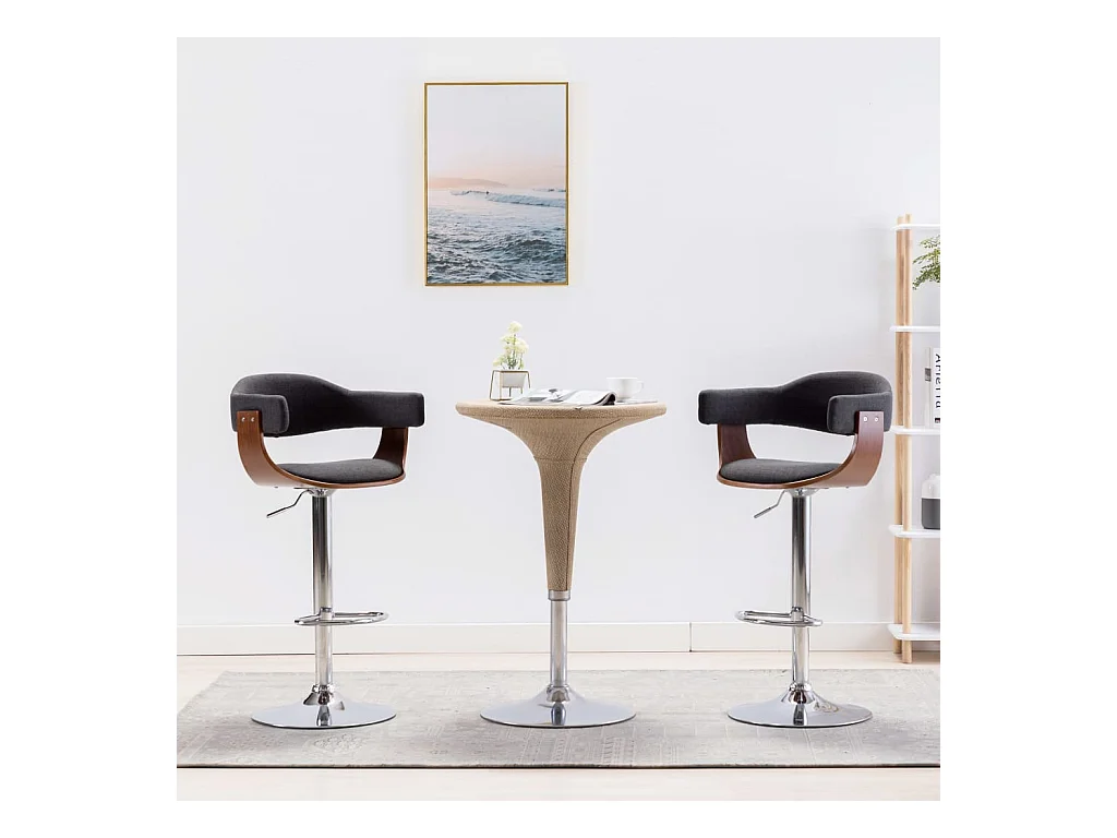 Tabourets de bar 2 pcs Gris Bois courbé et tissu