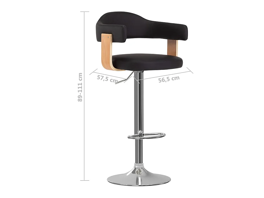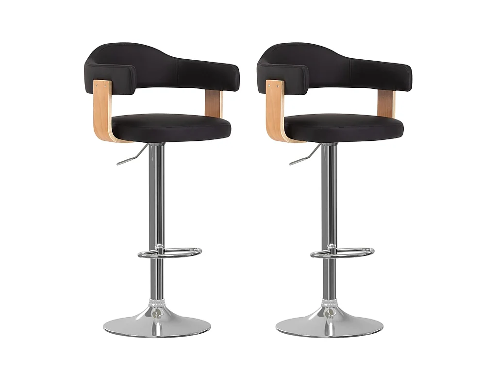 Tabourets de bar 2 pcs Noir Bois courbé et similicuir 3