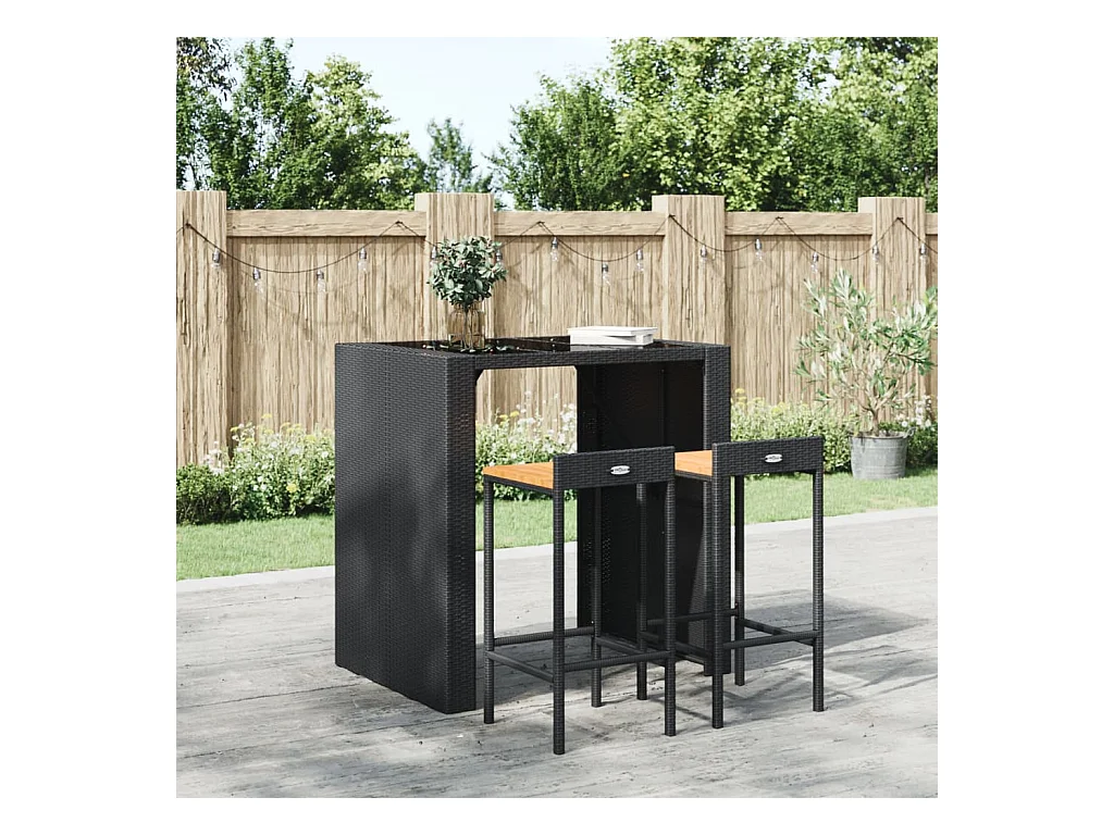 Tabourets de bar 2 pcs noir résine tressée et bois d'acacia