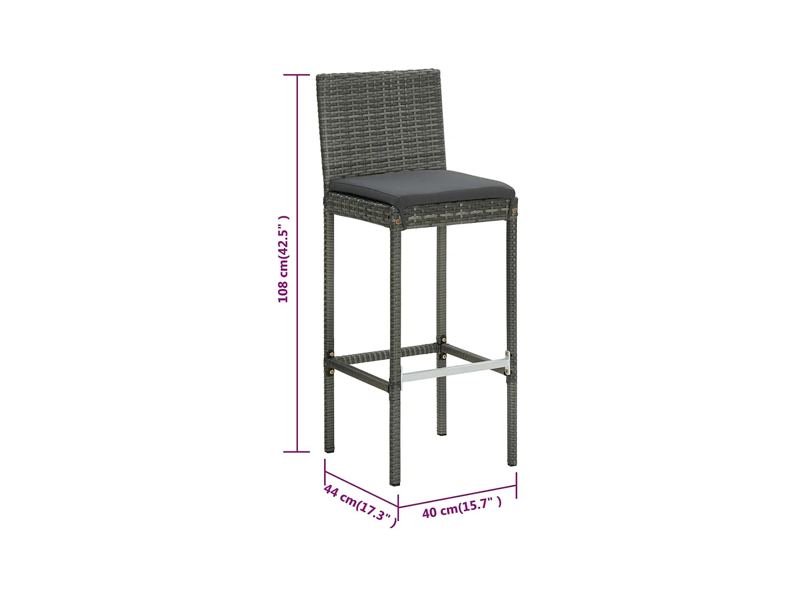 Tabourets de bar avec coussins 6 pcs gris résine tressée