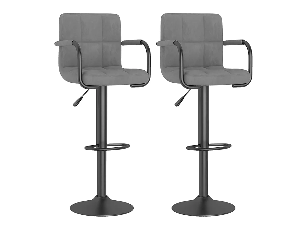 Tabourets de bar design avec accoudoir velours gris clair Konfa - Lot de 2