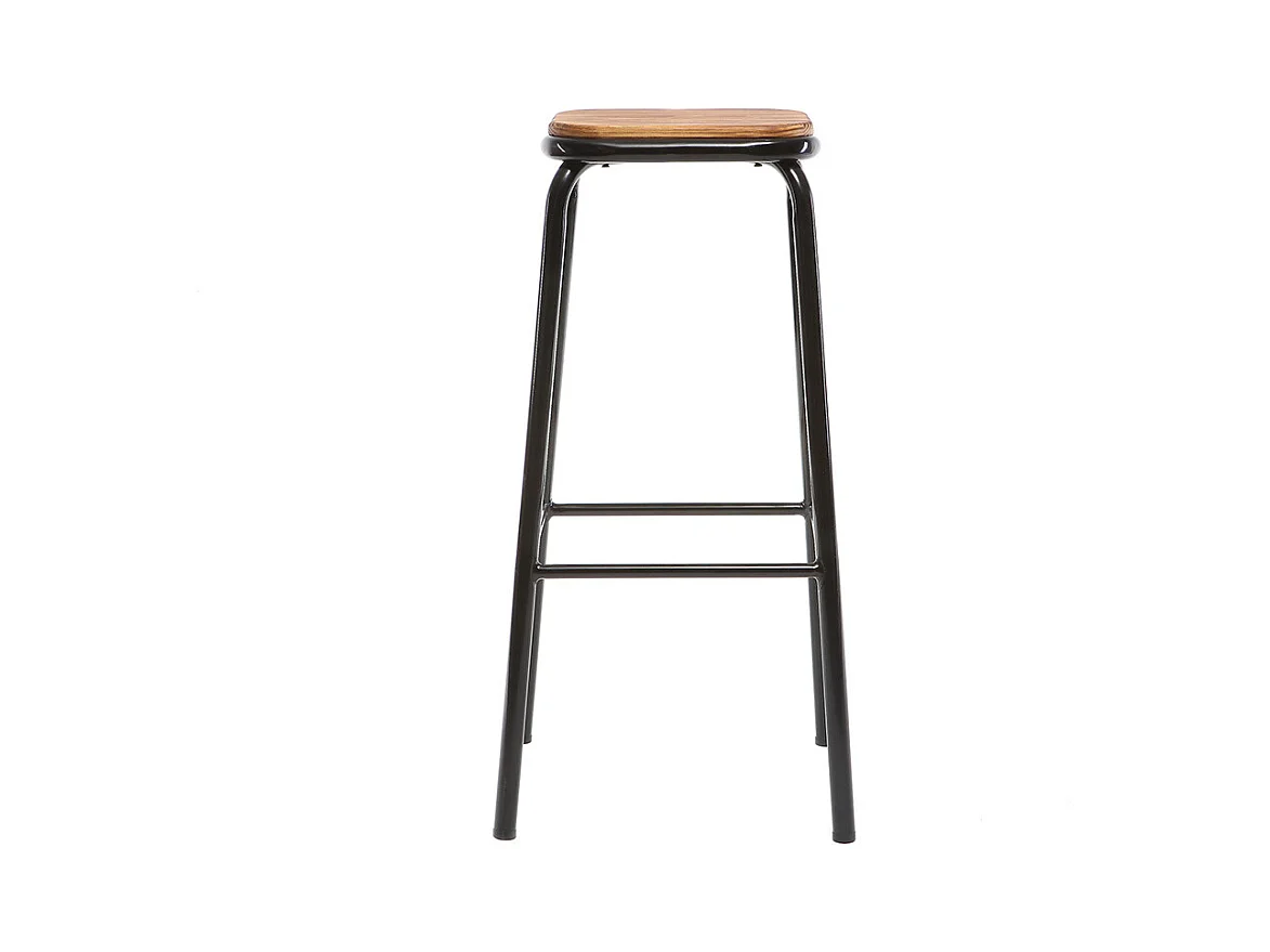 Tabouret de bar en Métal Noir industriel et Bois H 79.5 cm