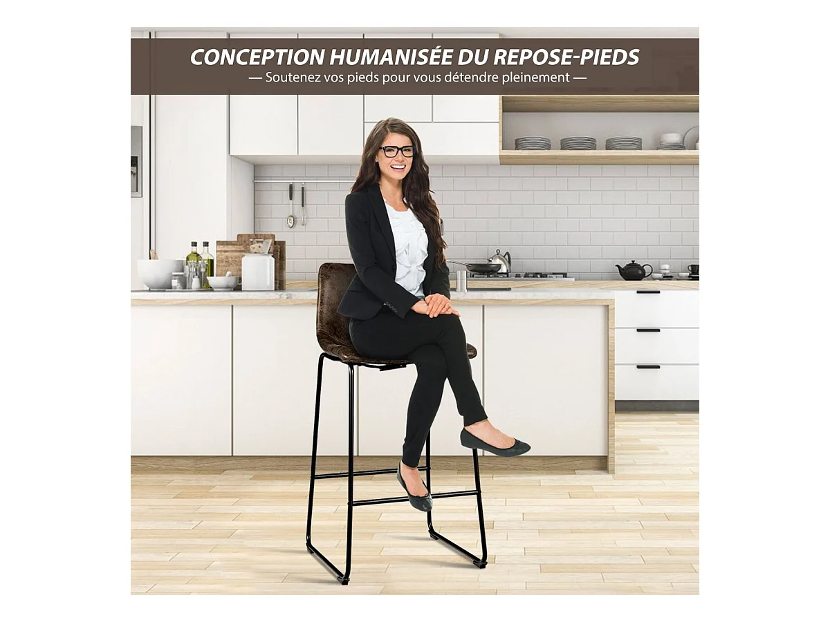 Tabourets de Bar (lot de 2), Repose-pieds, Hauteur assise 75cm, Marron Rustique