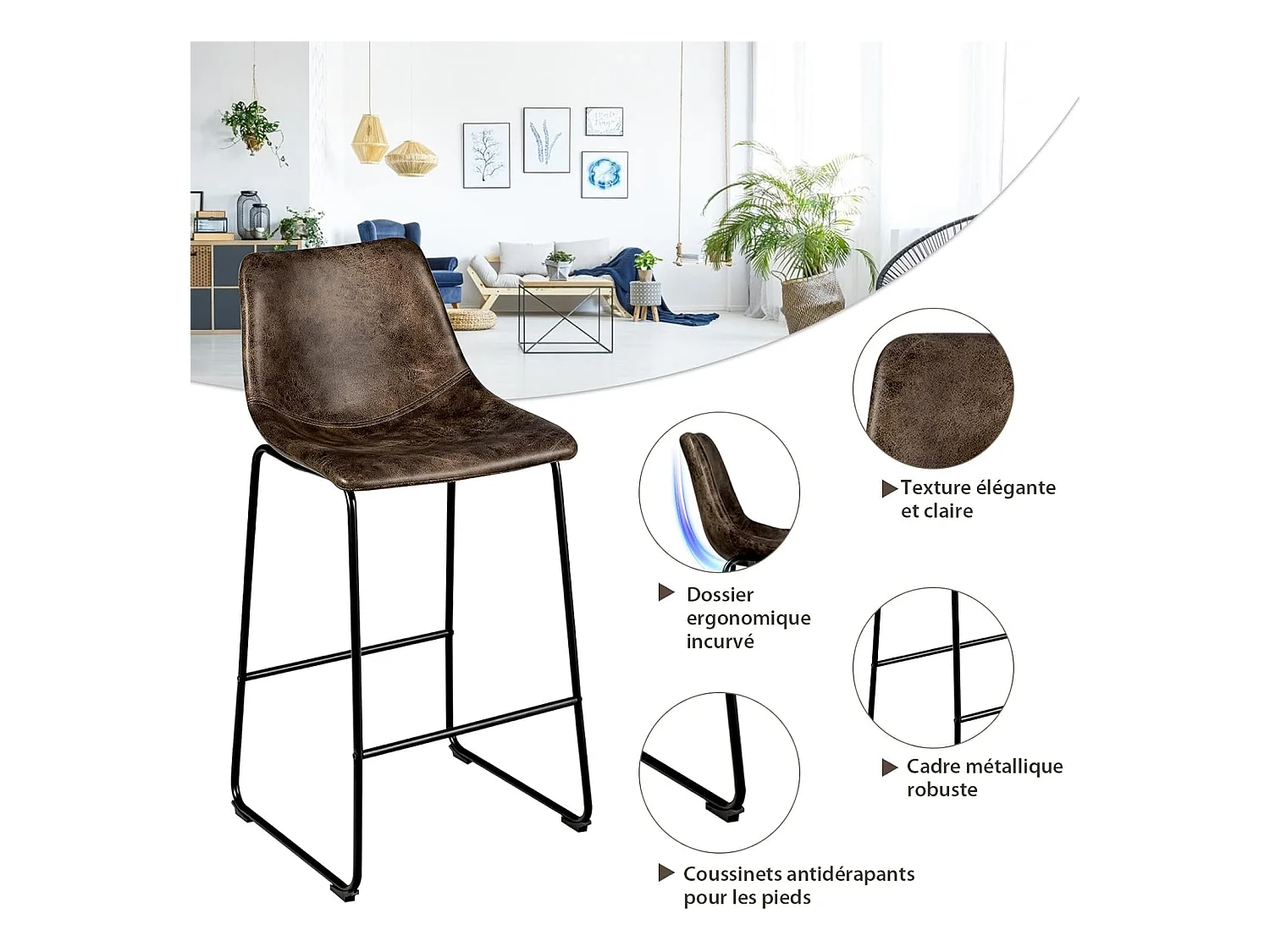 Tabourets de bar avec dossier marron Similicuir Axal - Lot de 6