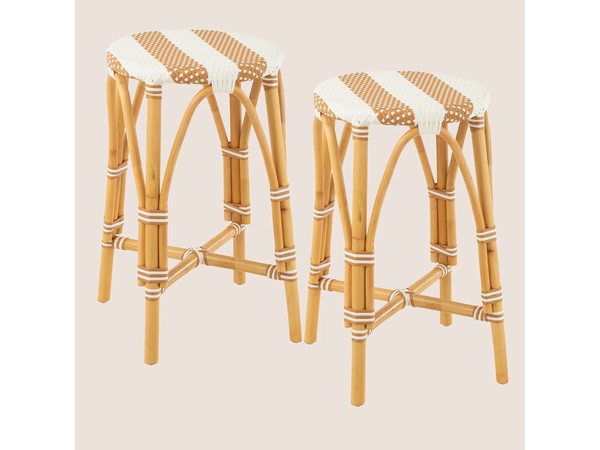 Tabourets de bar parisiens assise tressée rayures (lot de 2) - MONTMARTRE