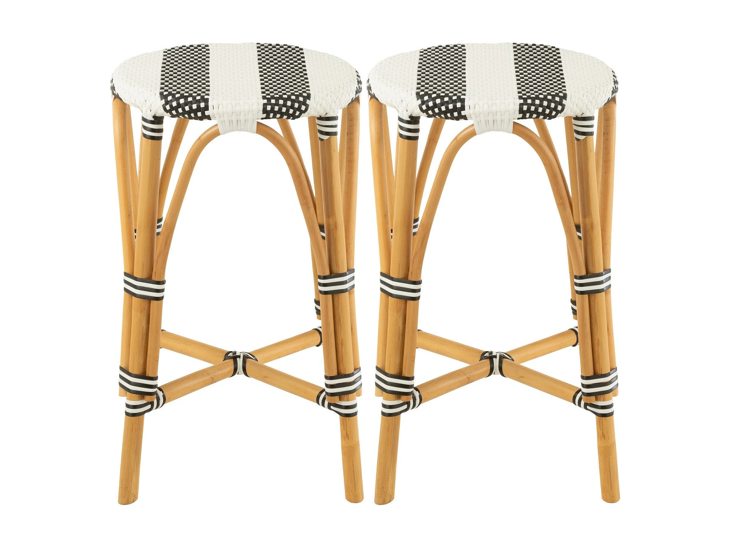 Tabourets de bar parisiens assise tressée rayures (lot de 2) - MONTMARTRE