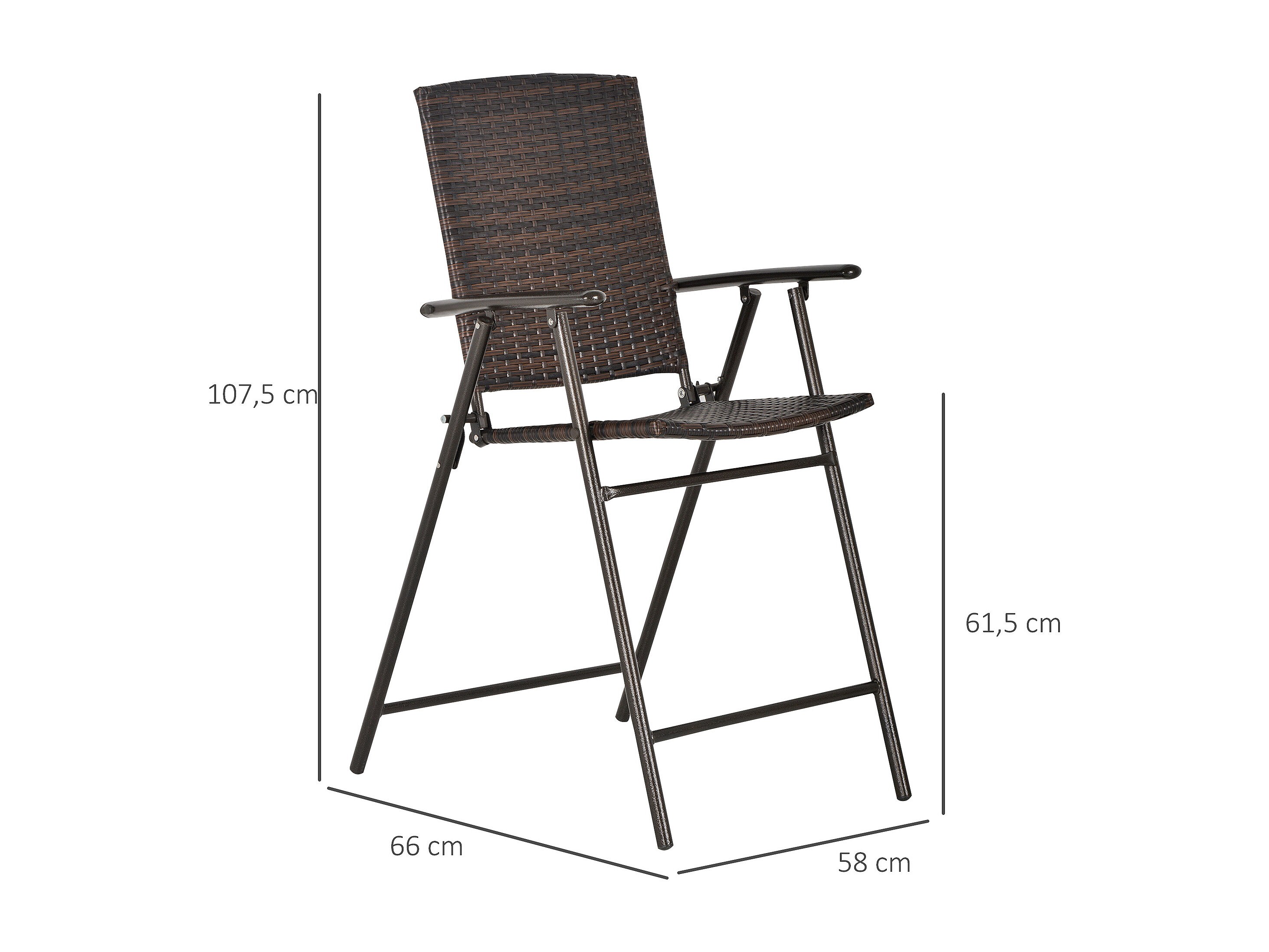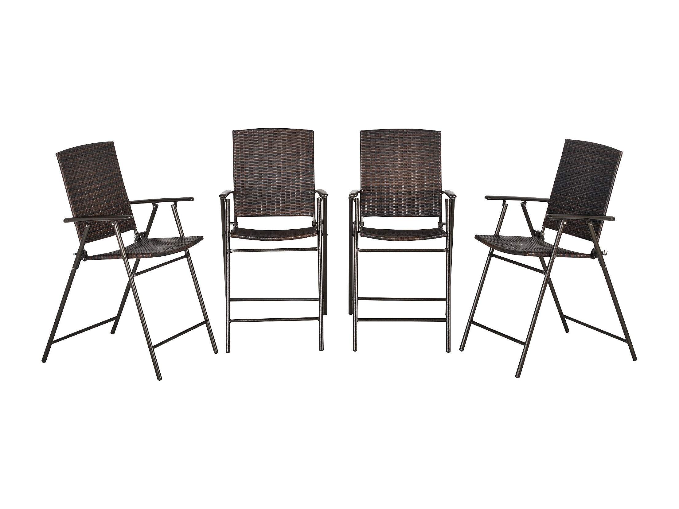 Tabourets de bar pliable style colonial - lot de 4 tabourets de bar - repose-pied + accoudoirs - métal époxy résine tressée chocolat