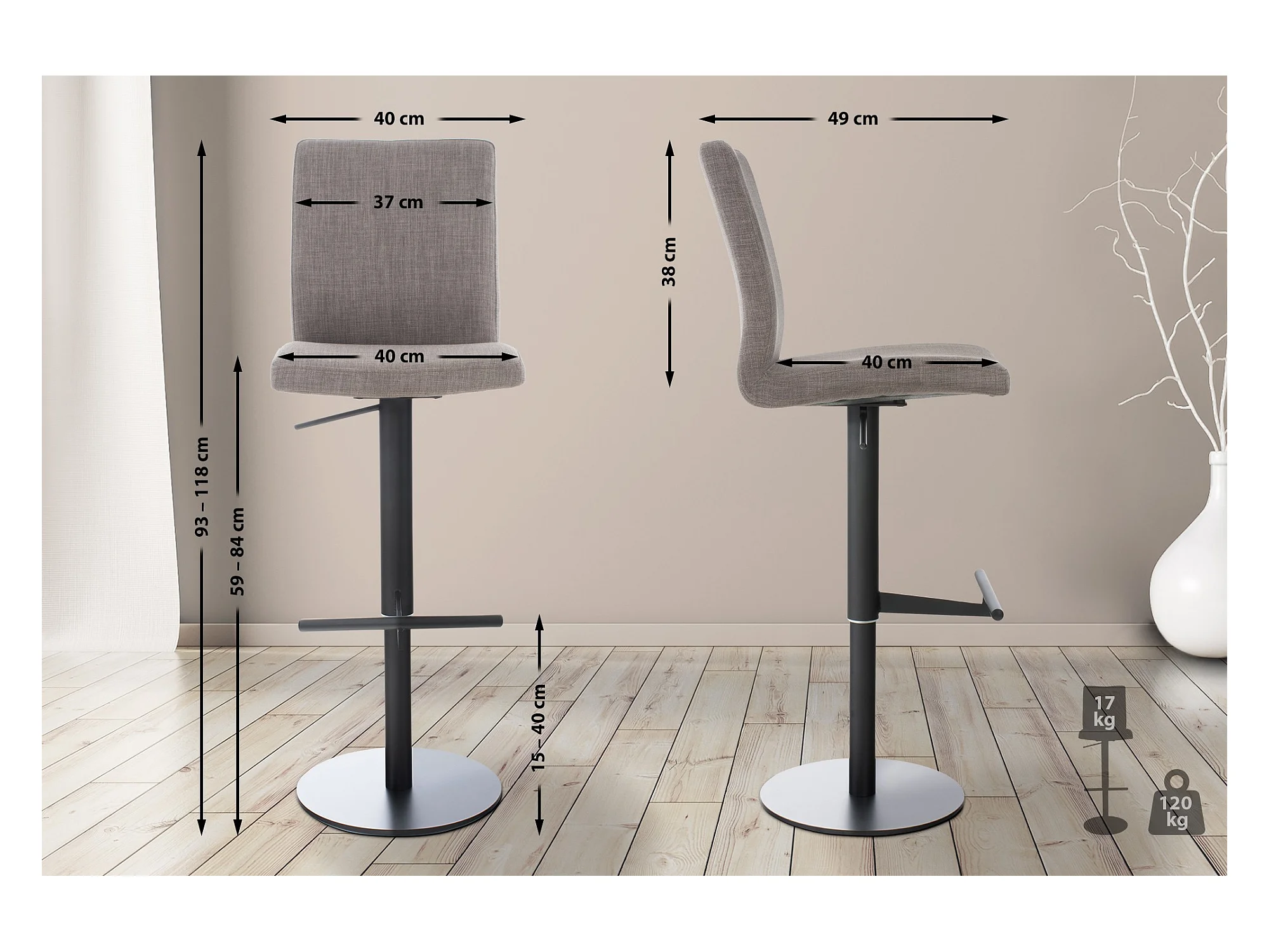 Tabouret de bar - Tissu & Noir - Gris - Cadiz