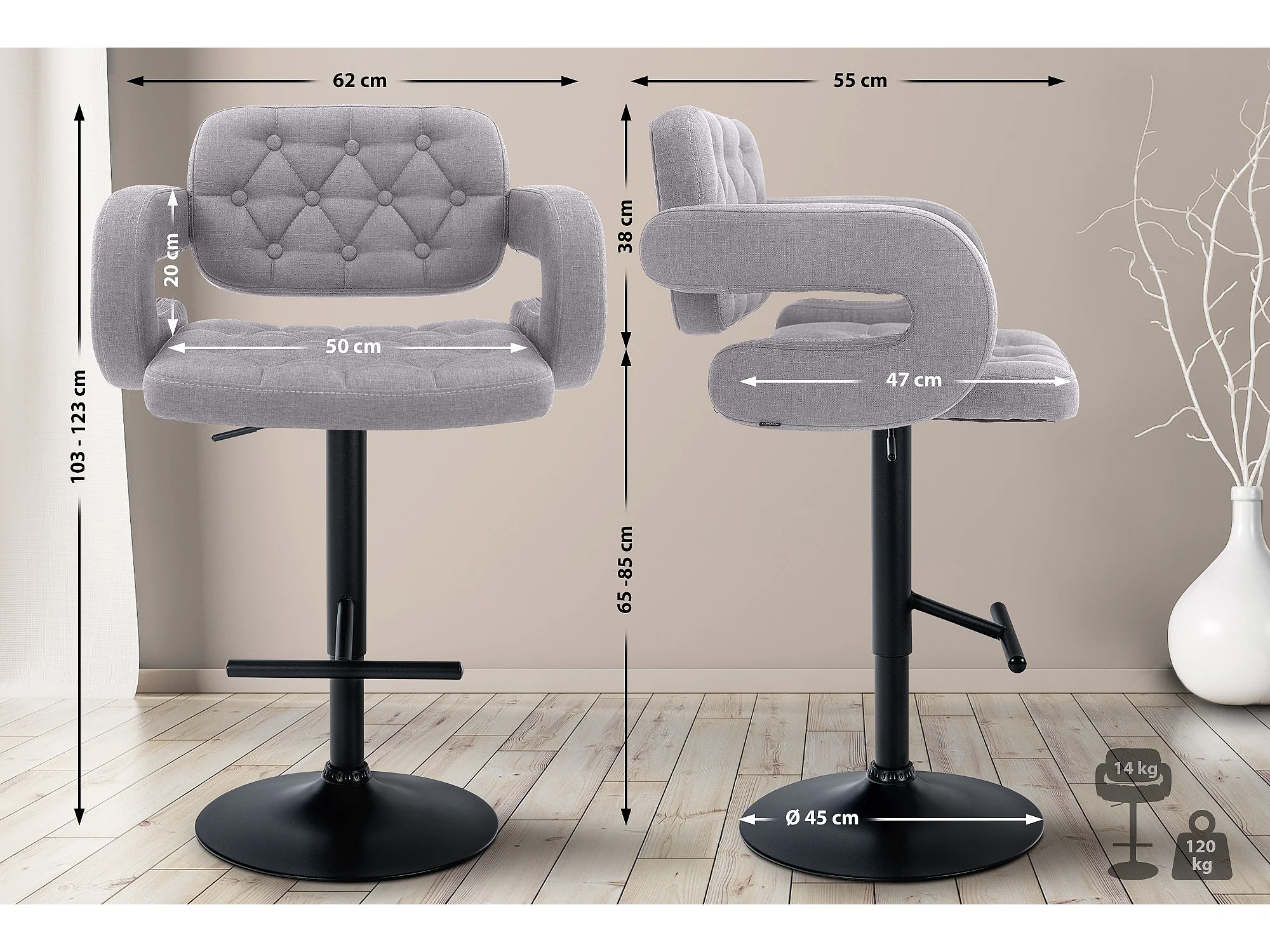 Tabouret de bar - Tissu & Métal - Gris - Dublin