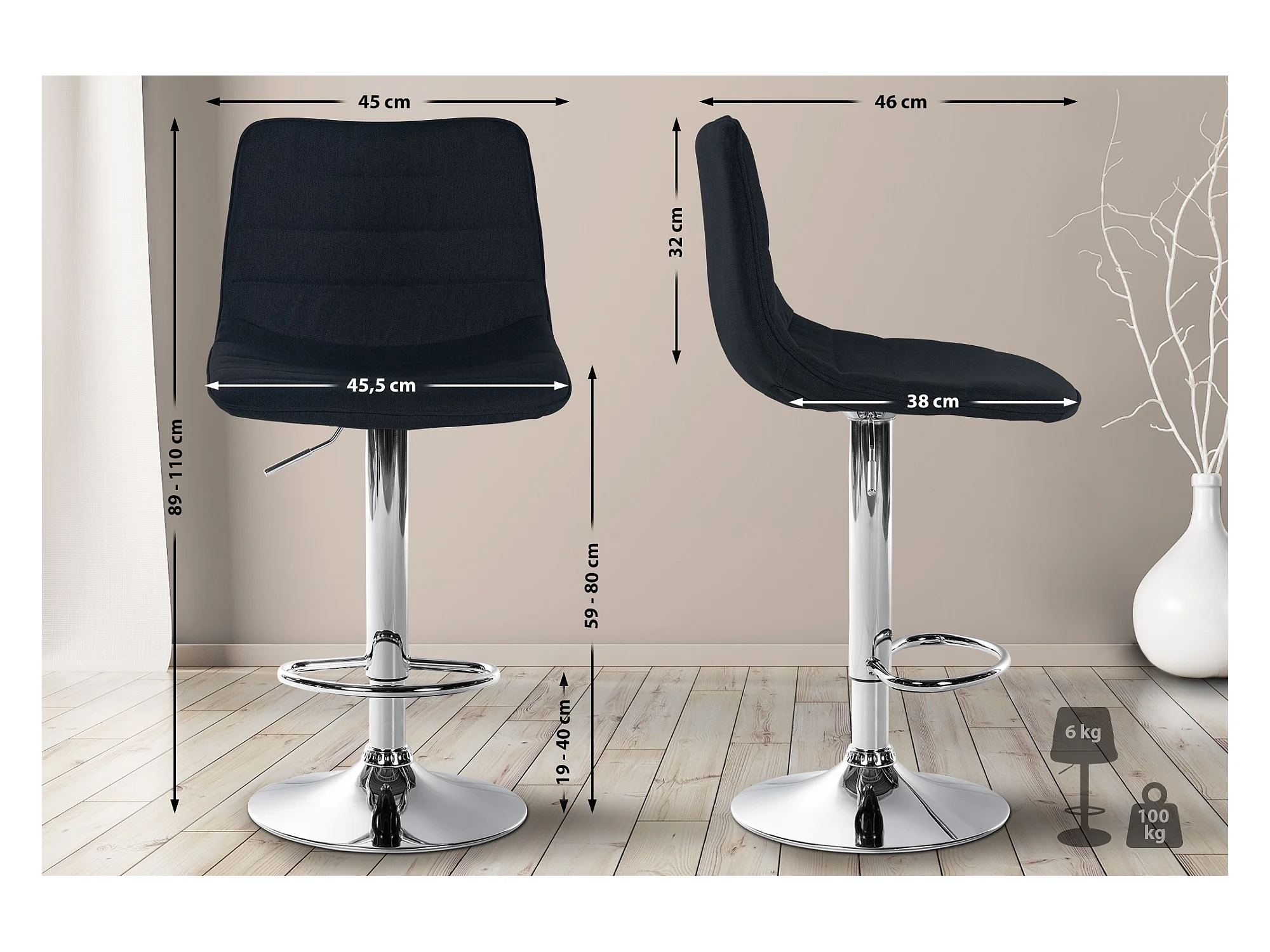 Tabouret de bar - Tissu & Chrome - Noir - Lex