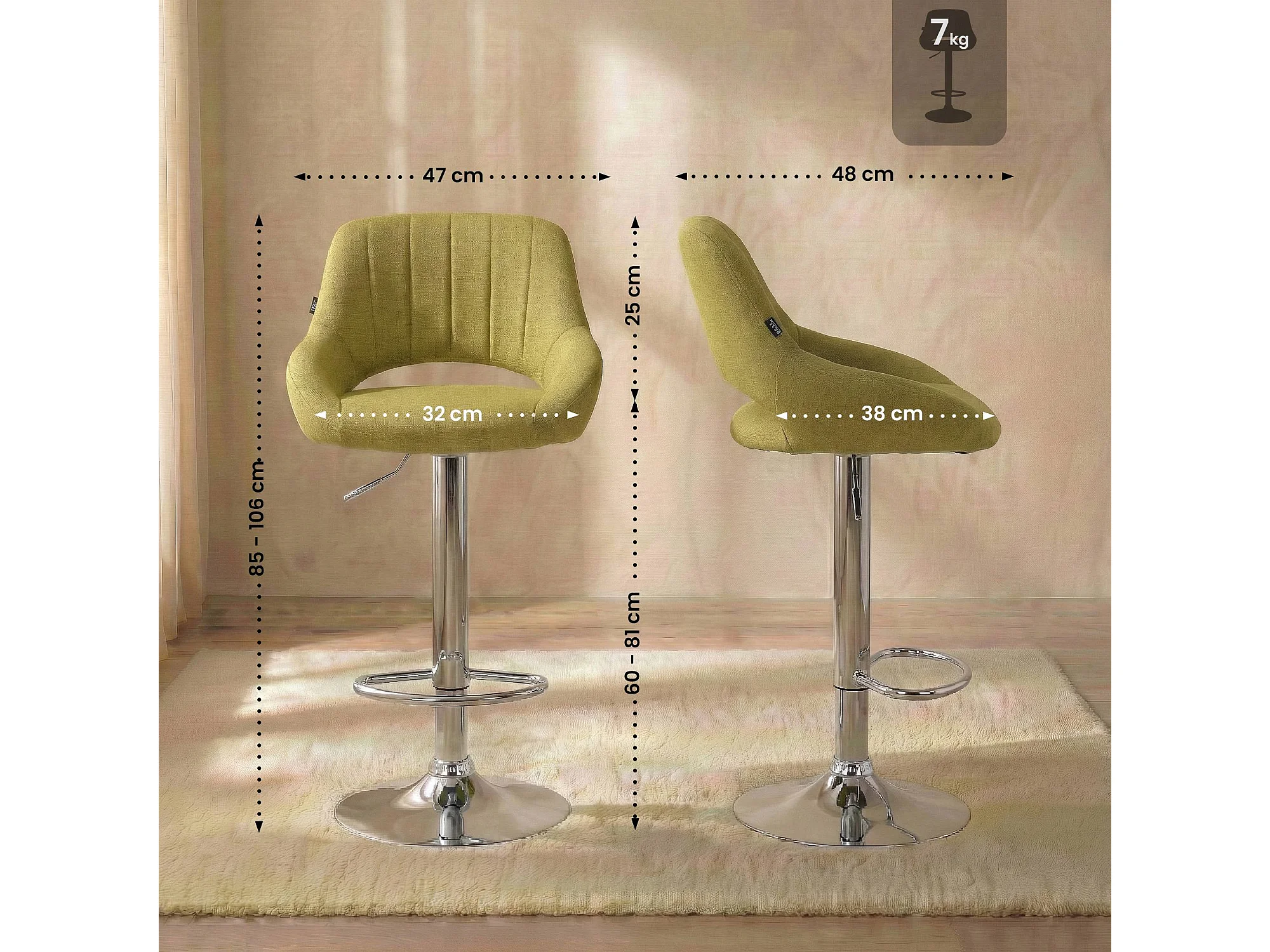 Tabouret de bar - Tissu & Chrome - Vert - Milet