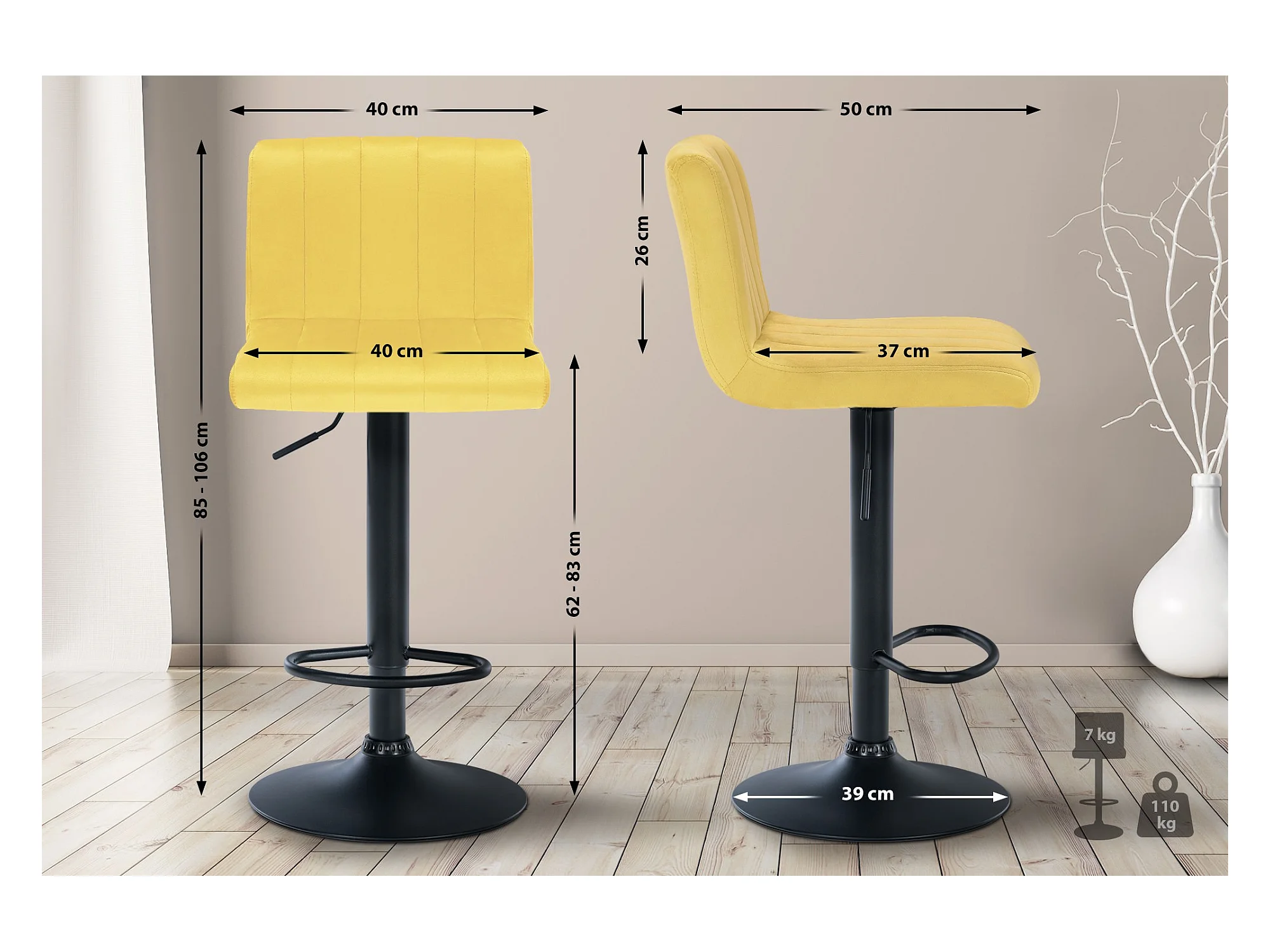 Tabouret de bar - Velours & Métal noir mat - Jaune - Jamie