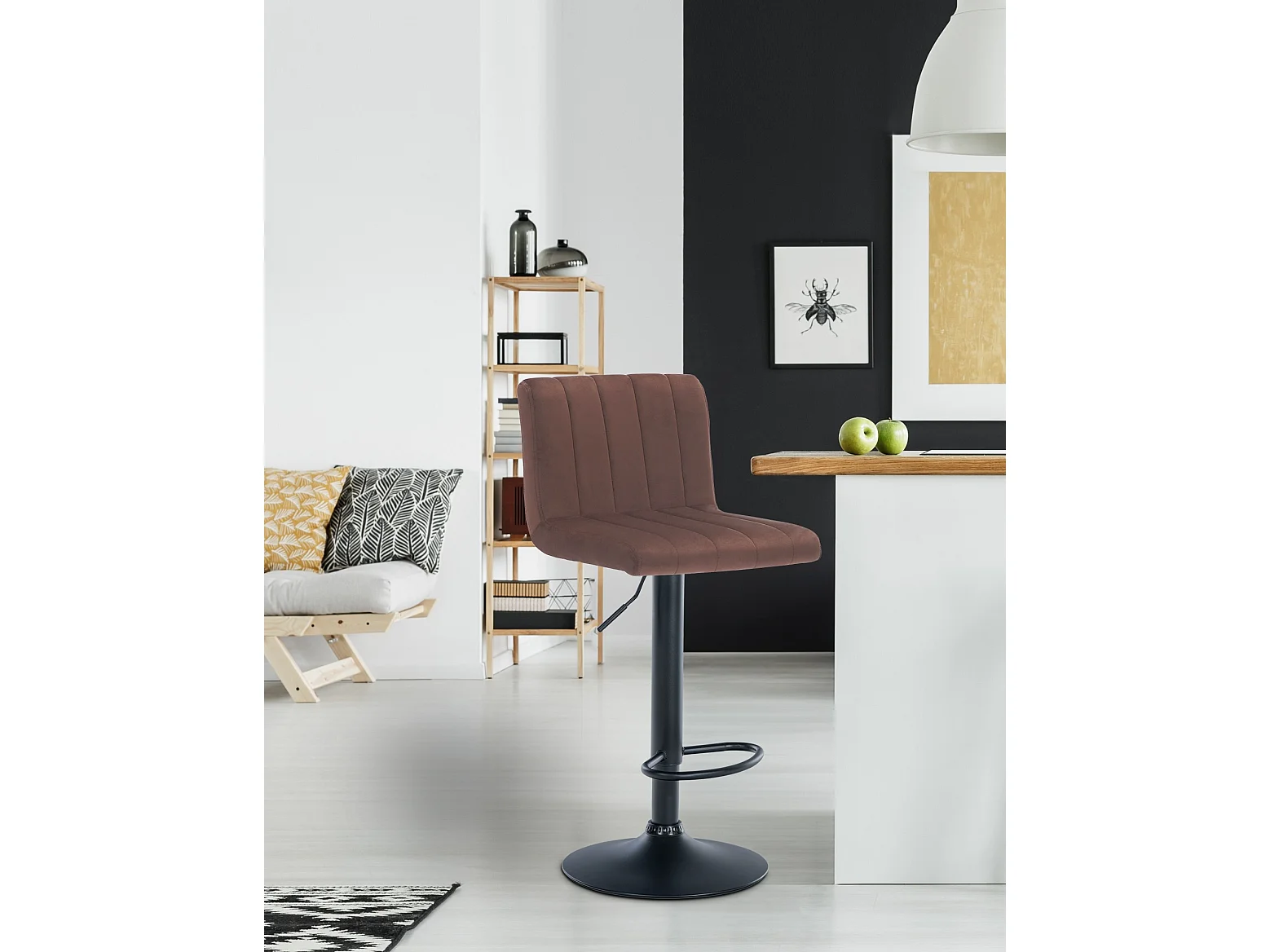 Tabouret de bar - Velours & Métal noir mat - Marron - Jamie
