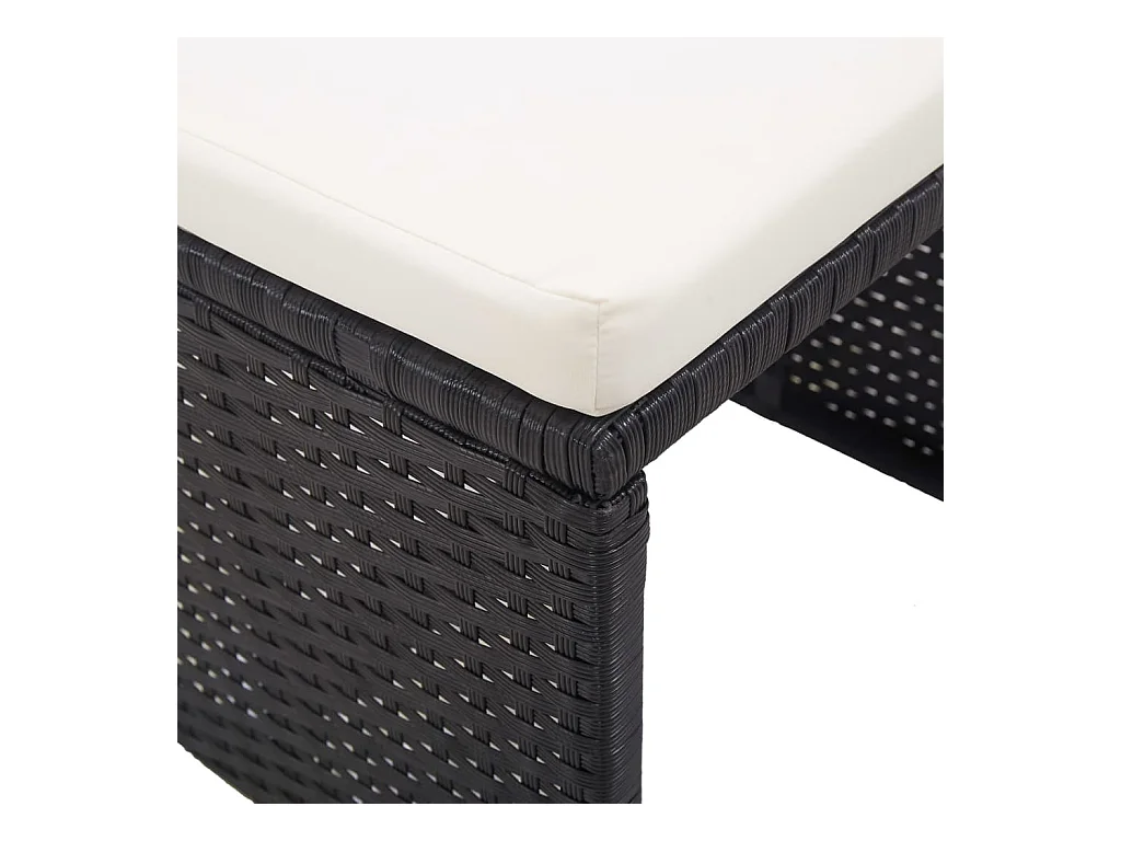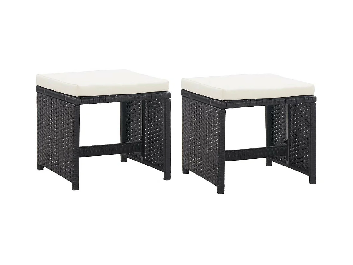 Tabourets de jardin 2 pcs avec coussins Résine tressée Noir