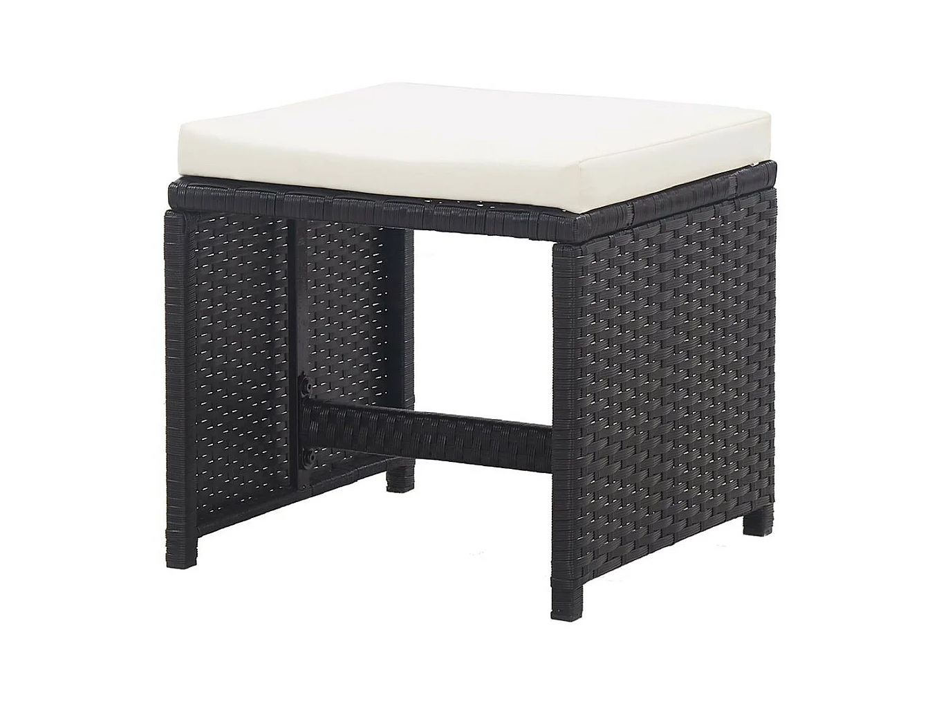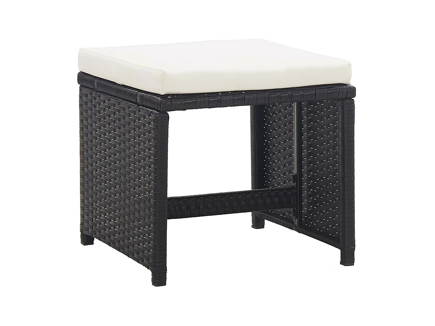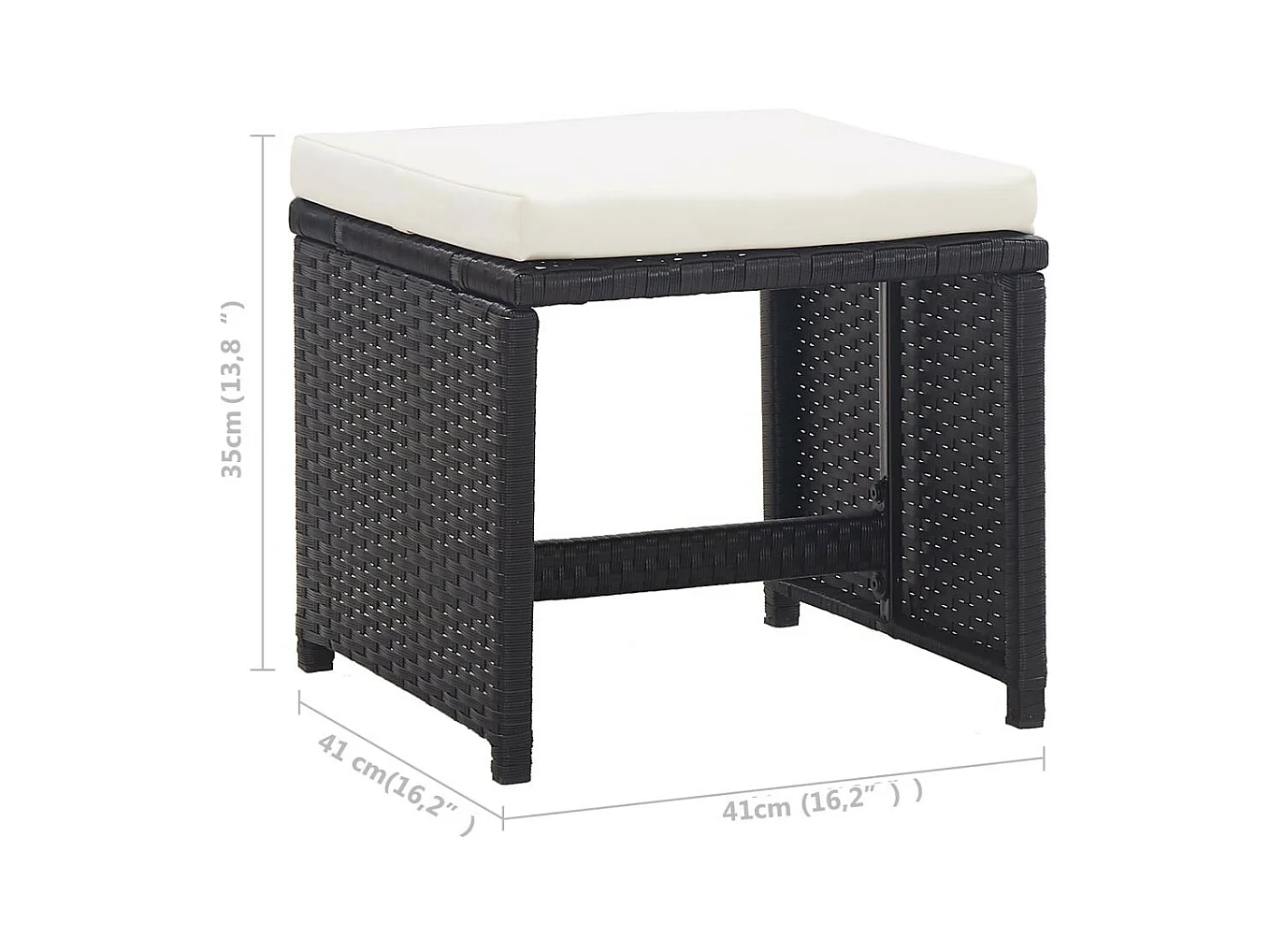 Tabourets de jardin 4 pcs avec coussins Résine tressée Noir