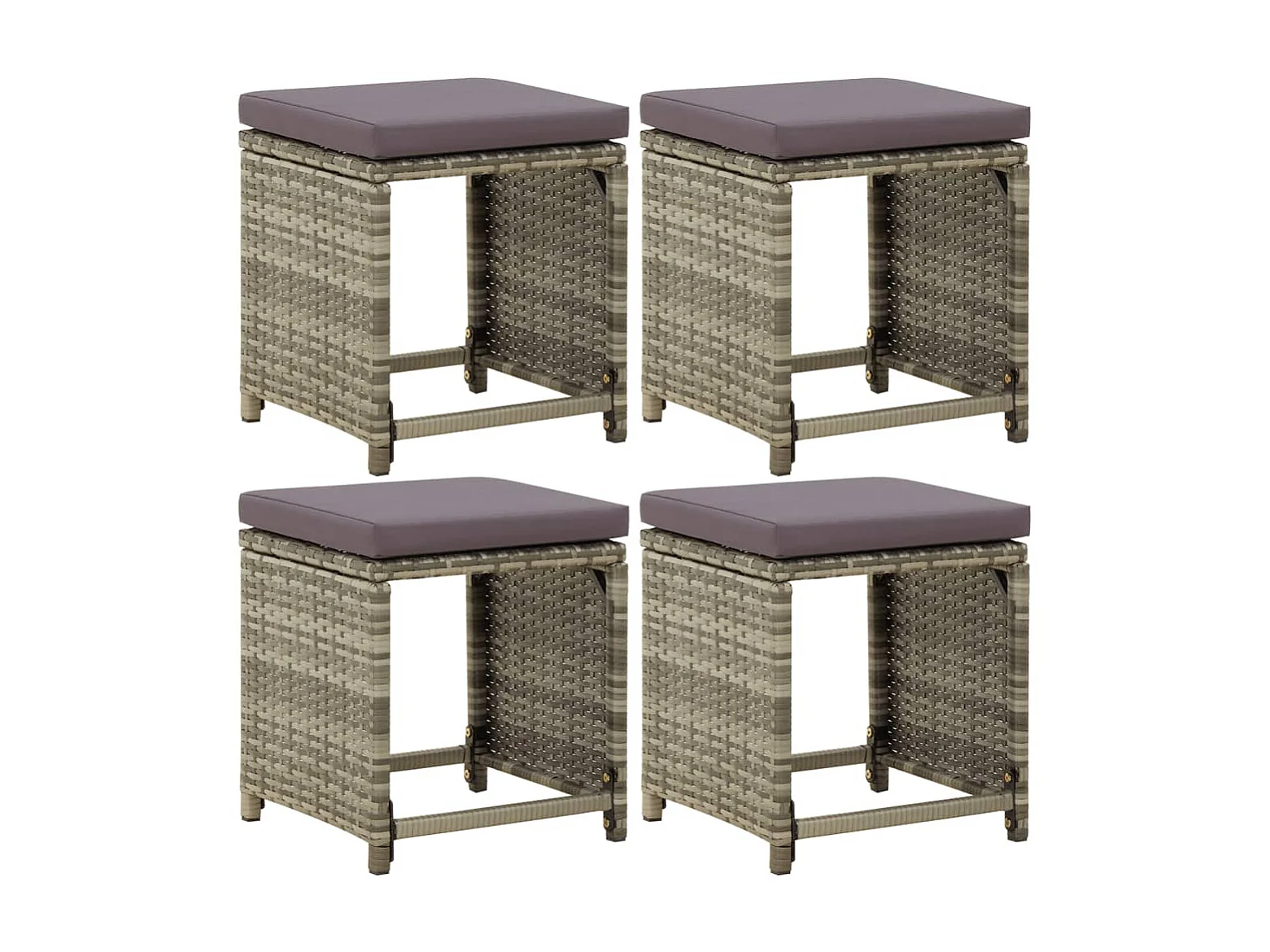 Tabourets de jardin 4 pcs avec coussins Résine tressée Gris