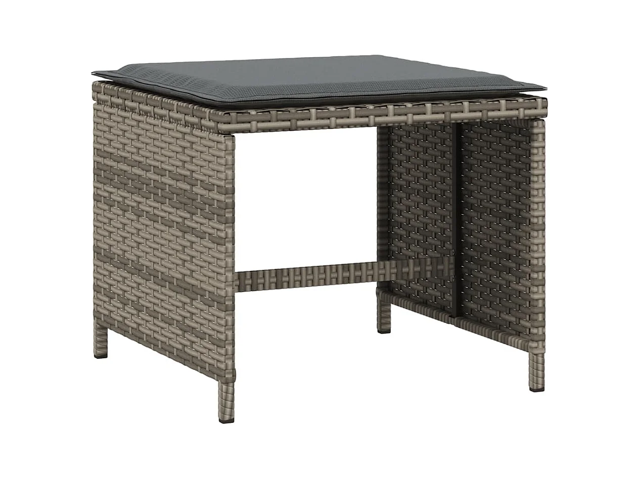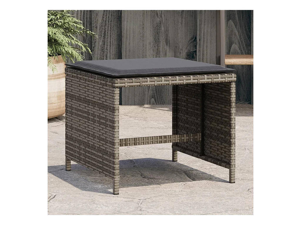 Tabouret de jardin avec coussin gris 55x55x37 résine tressée
