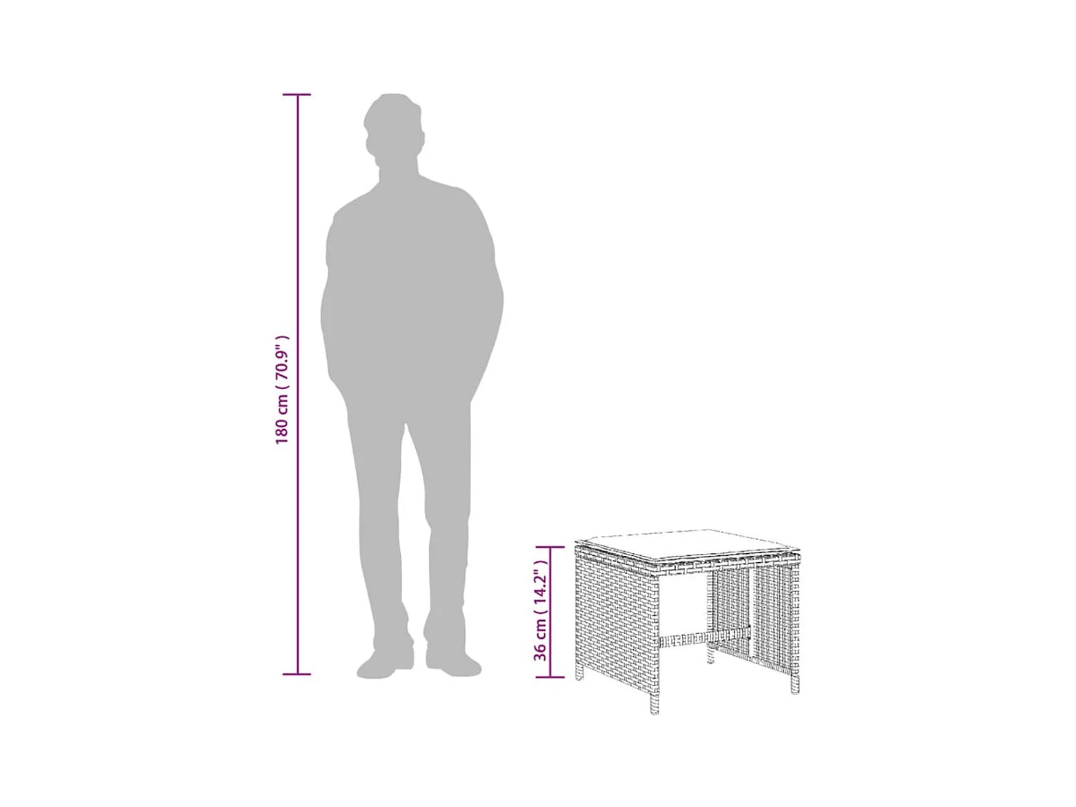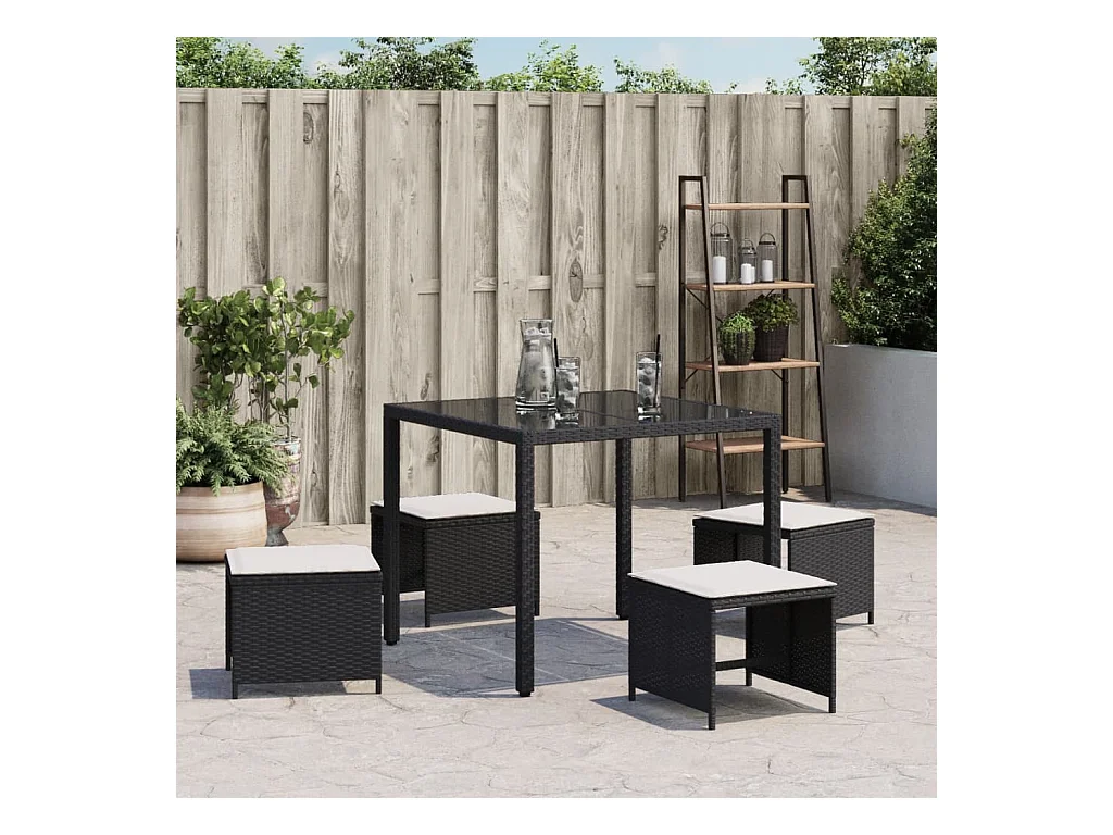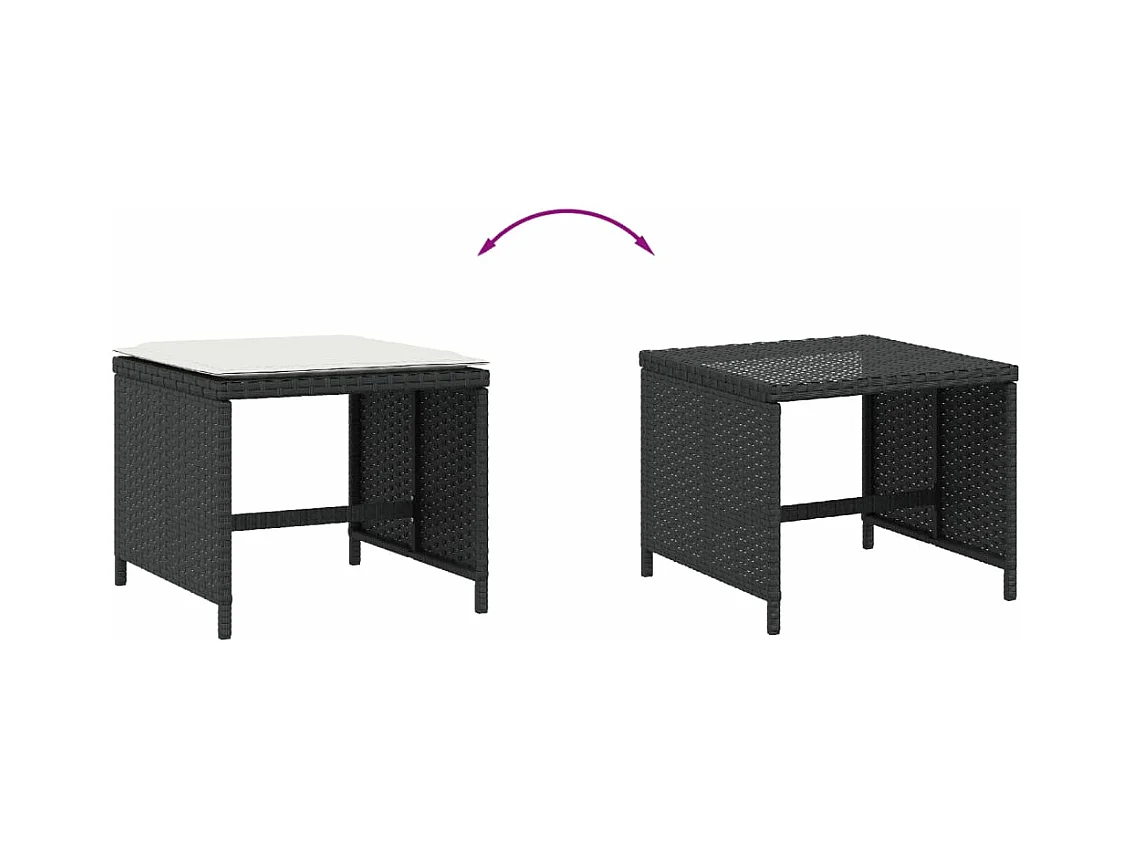 Tabouret de jardin avec coussin noir 55x55x37 résine tressée