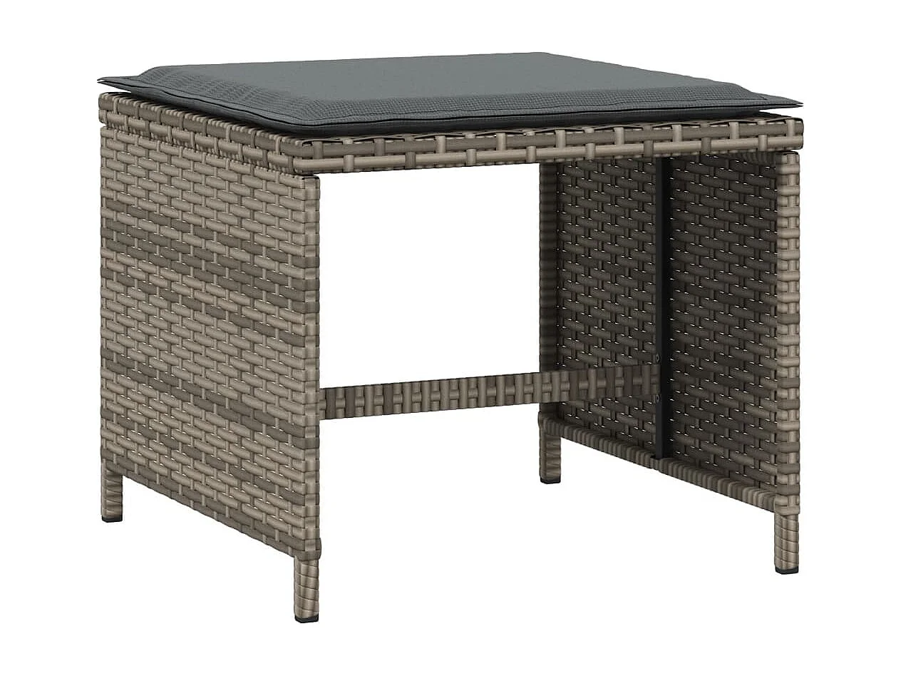 Tabouret de jardin avec coussin gris 55x55x37 résine tressée
