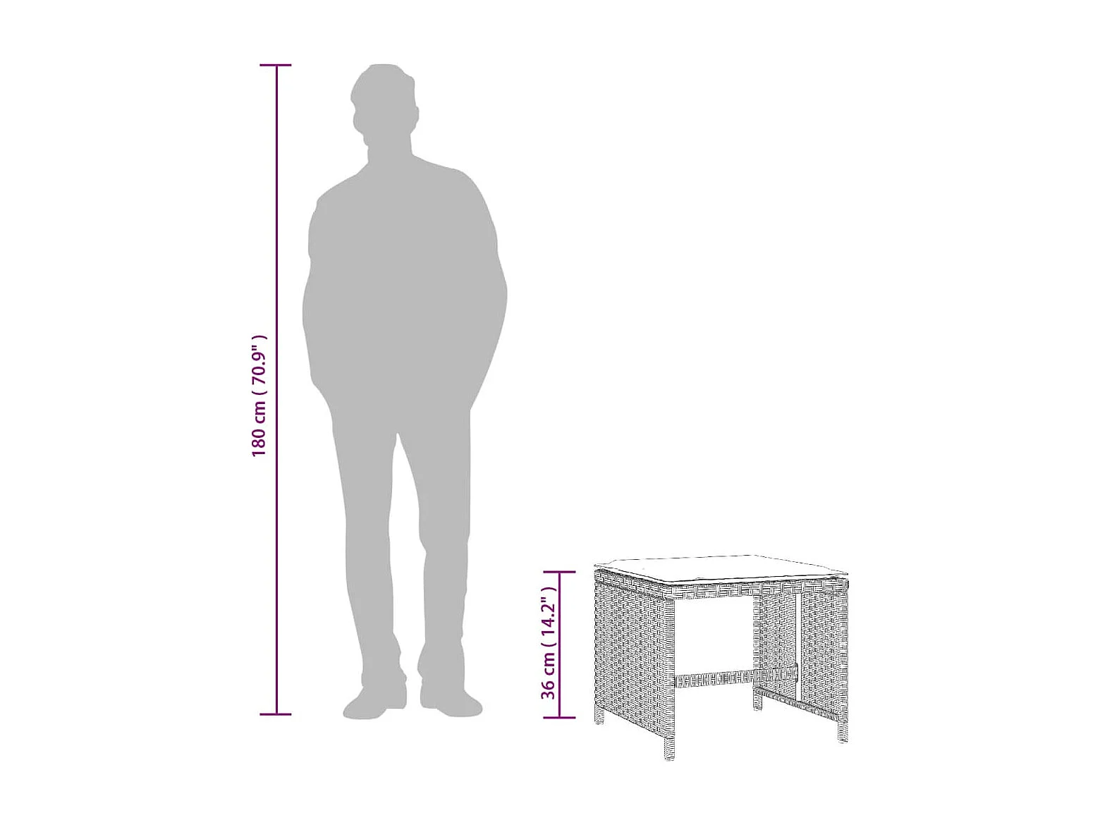 Tabouret de jardin avec coussin gris 55x55x37 résine tressée