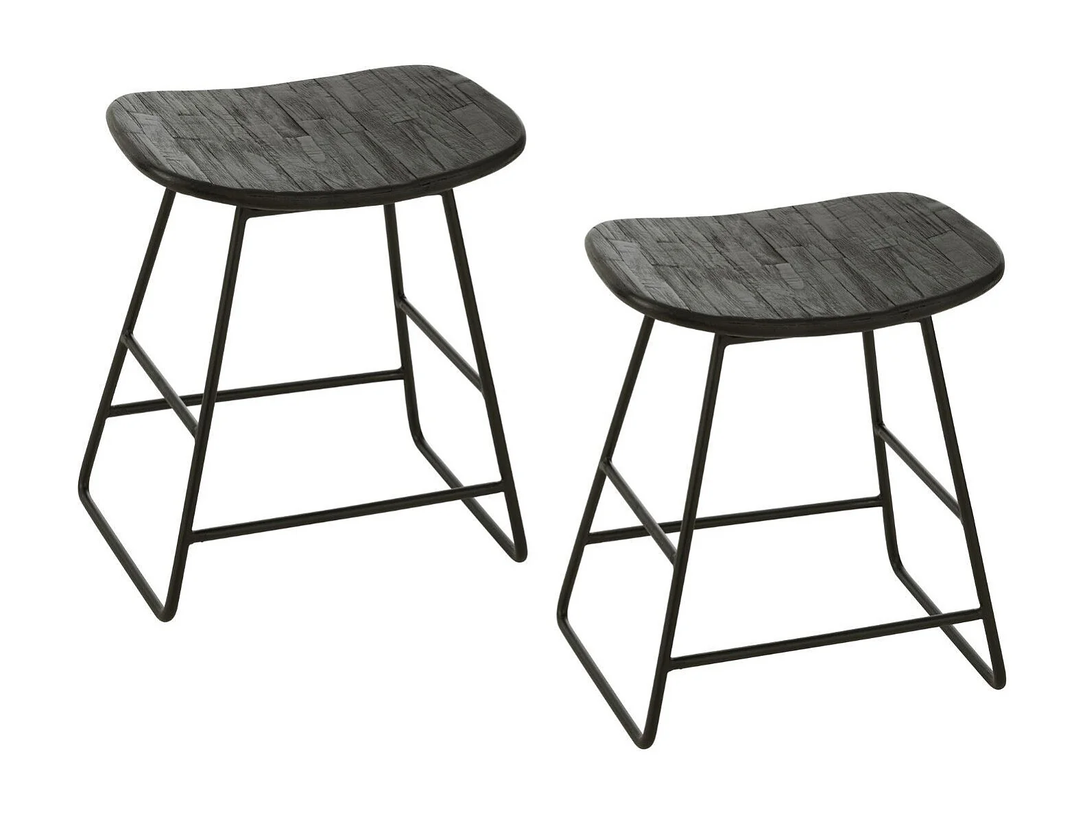 Tabourets en teck recyclé brossé et en métal (lot de 2) - DILI