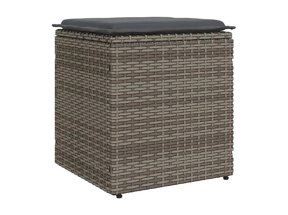 Tabourets jardin coussins lot de 2 gris 40x40x43 poly rotin