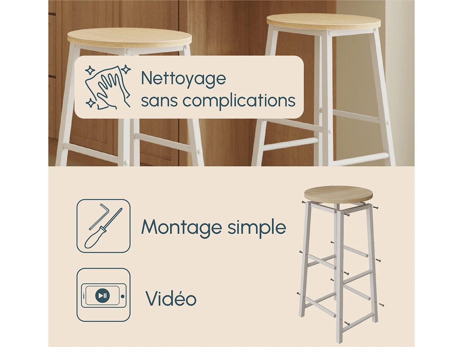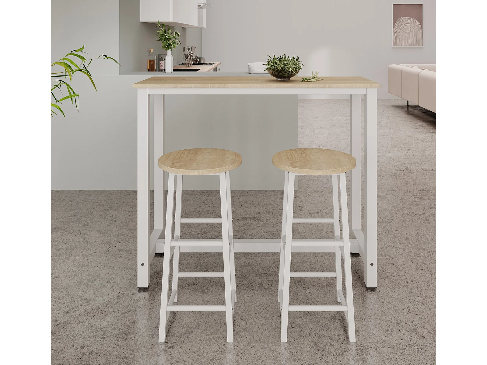 Tabourets pour Cuisine Salle à manger en Blanc et Sonoma 33x33x71cm Lucca