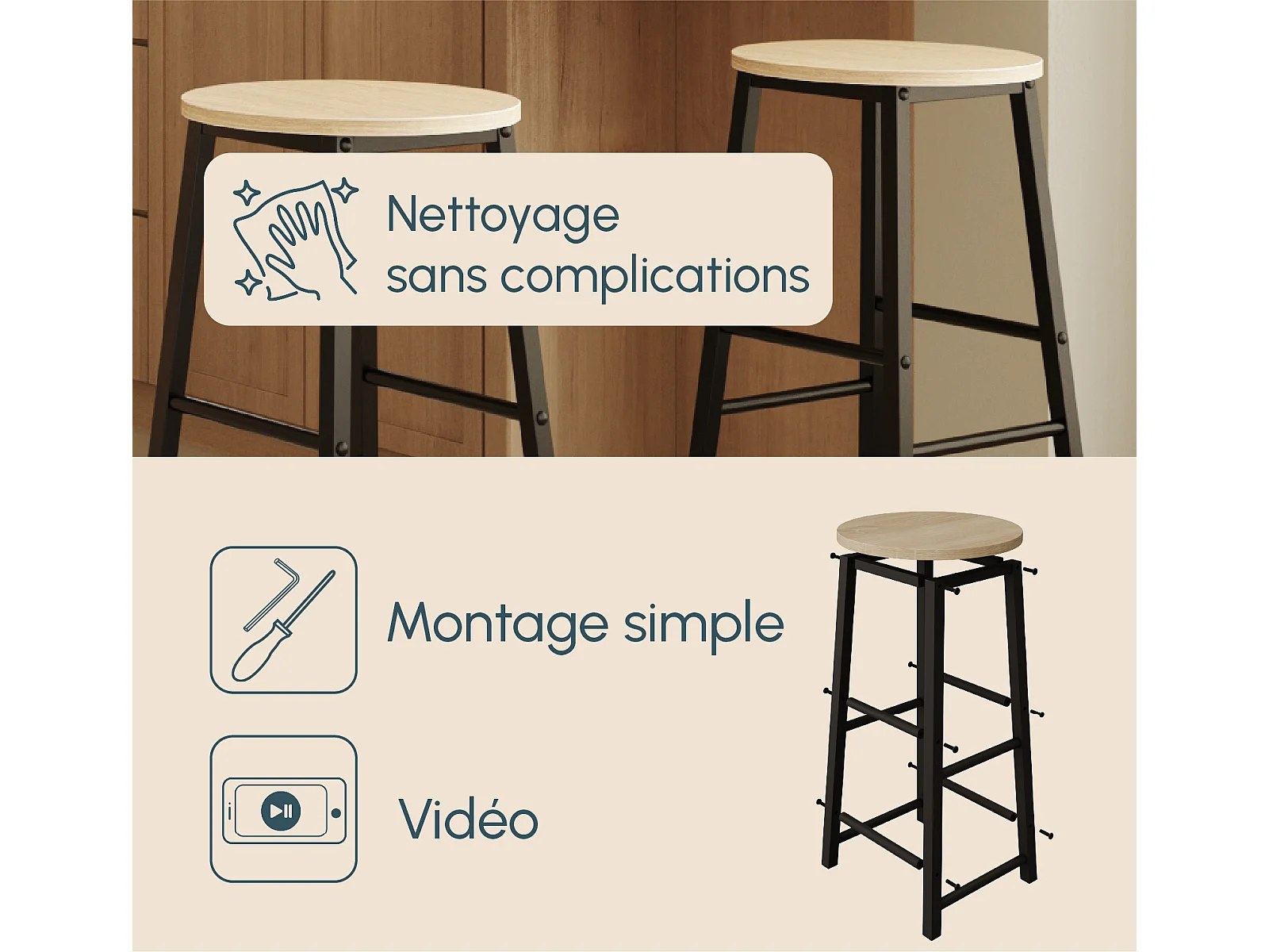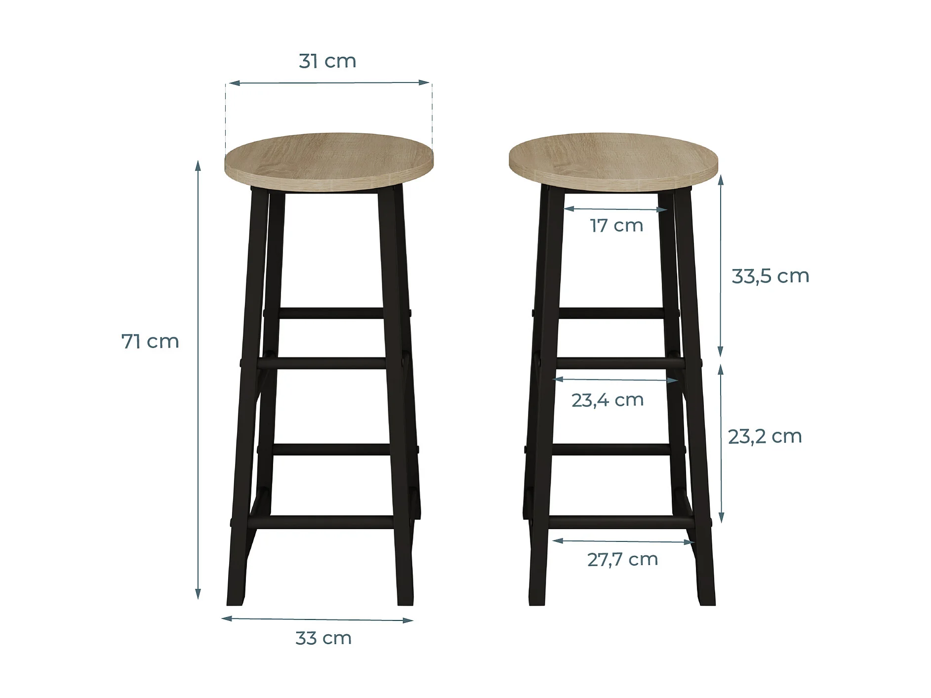 Tabourets pour Cuisine Salle à manger en Noir et Sonoma 33x33x71cm Lucca