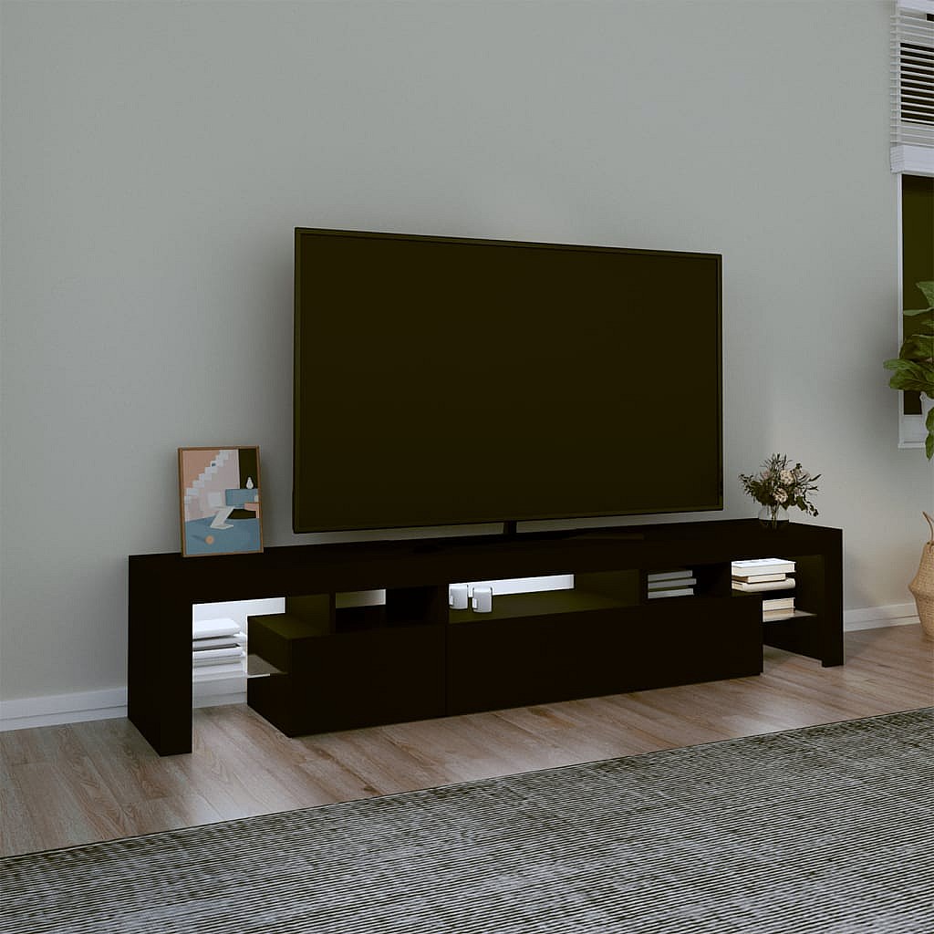 Tahlequah Meuble TV avec lumières LED Noir 200x36,5x40 cm