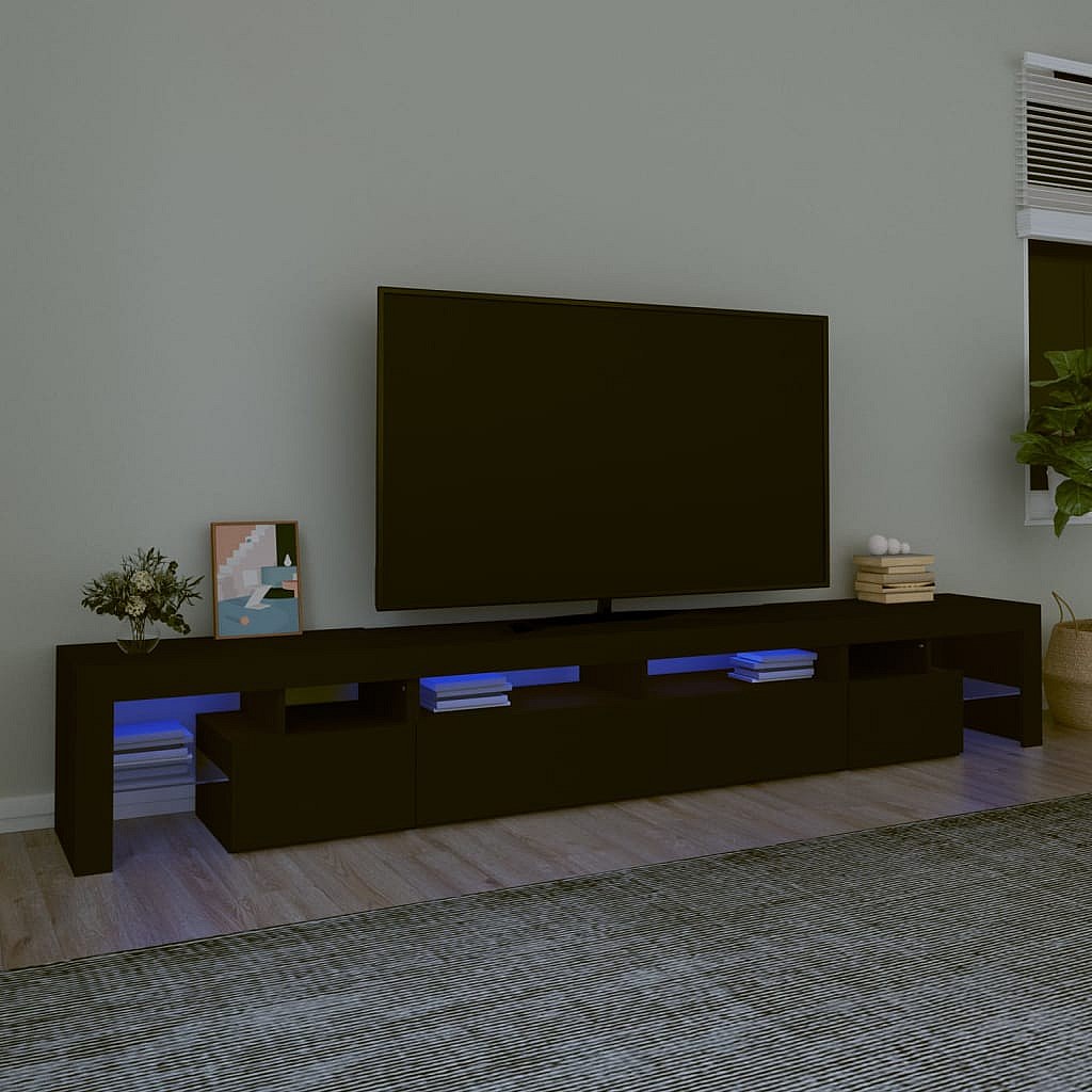 Tahlequah Meuble TV avec lumières LED Noir 260x36,5x40 cm