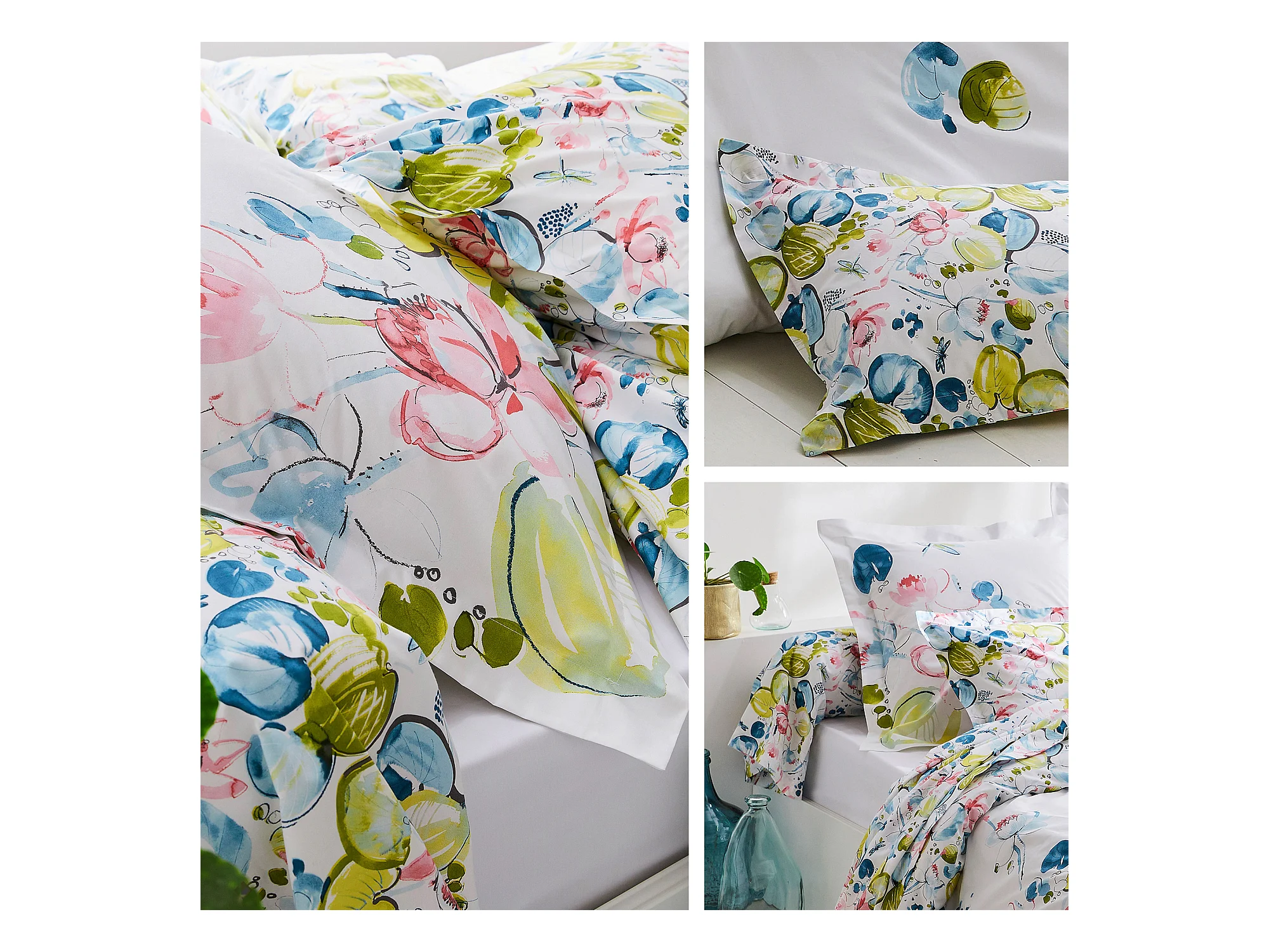 Taie de traversin 140x43 cm percale coton NENUPHAR aqua