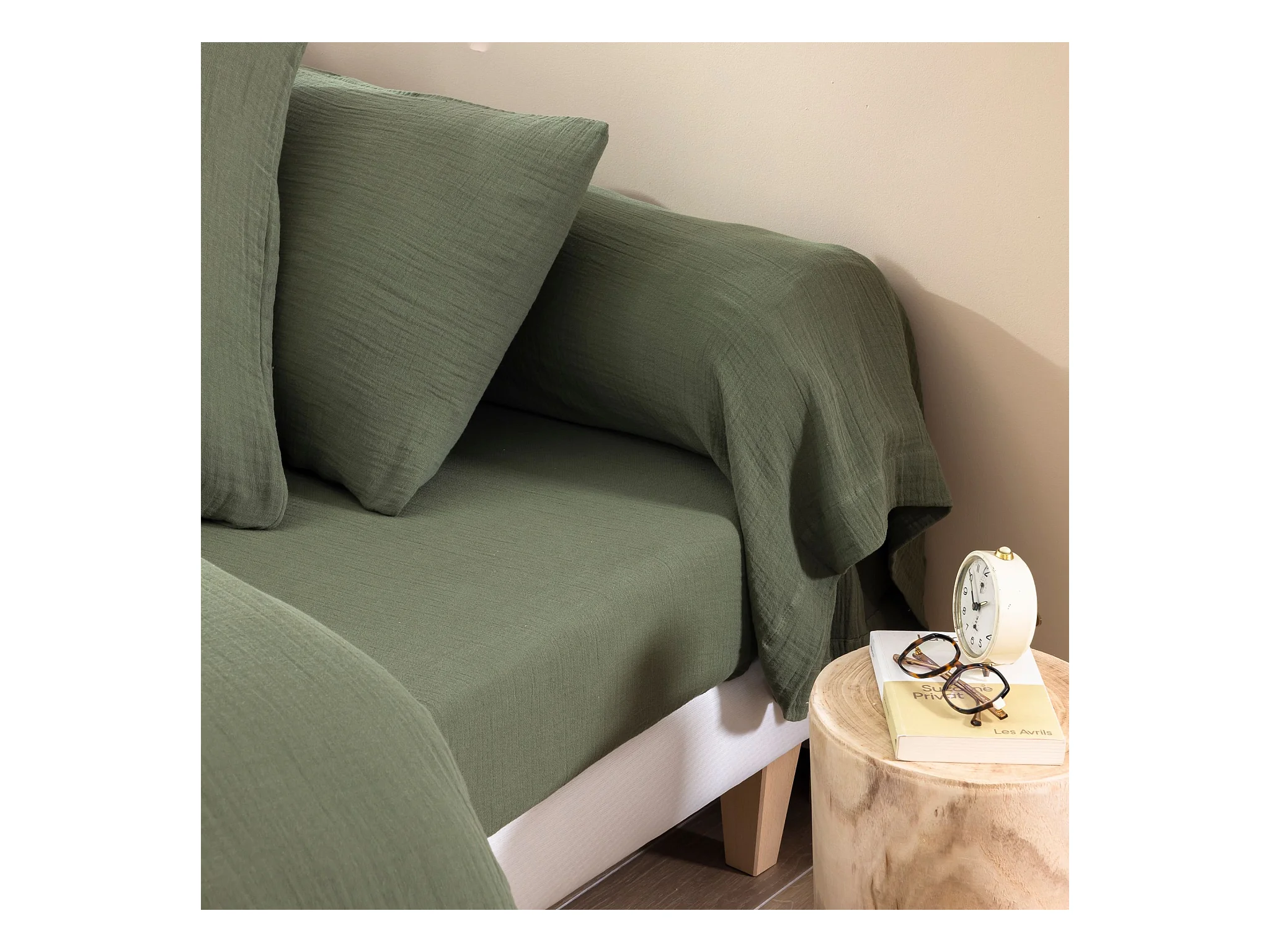 Taie de traversin 43x185 gaze de coton kaki Terre de nuit NOA - NOA