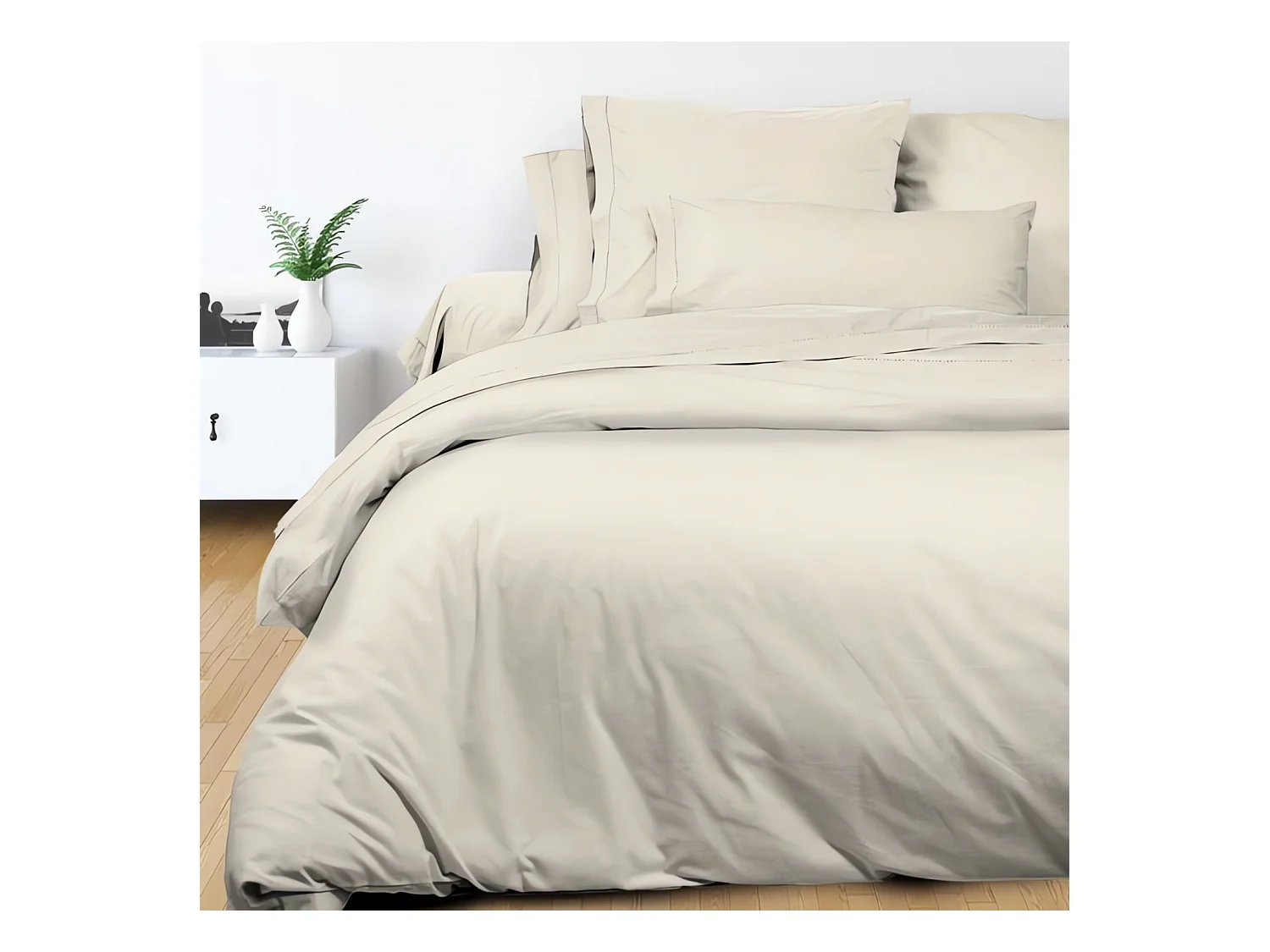 Parure de lit 2 personnes en coton 57 fils imprimé beige 240x220cm