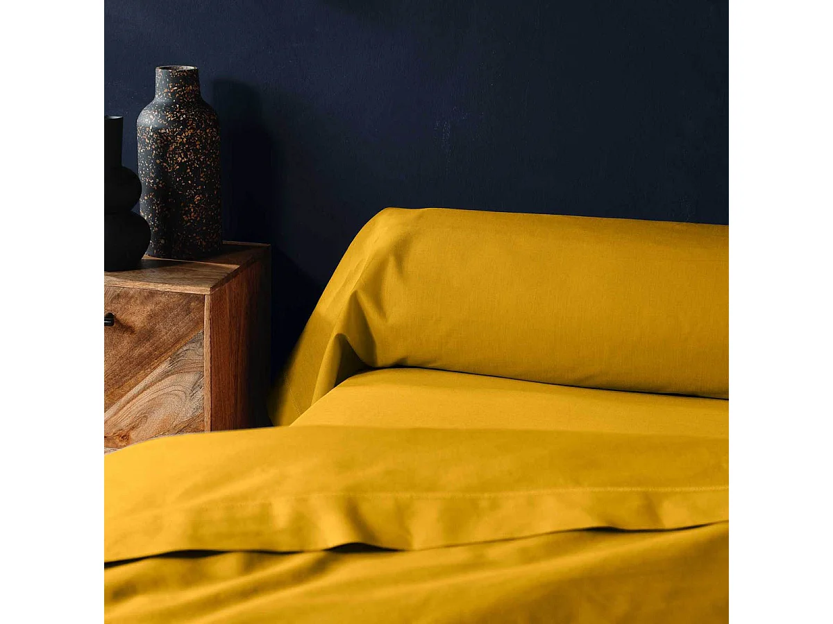 Taie traversin en coton 57 fils unie jaune mimosa jaune moutarde 85x185cm