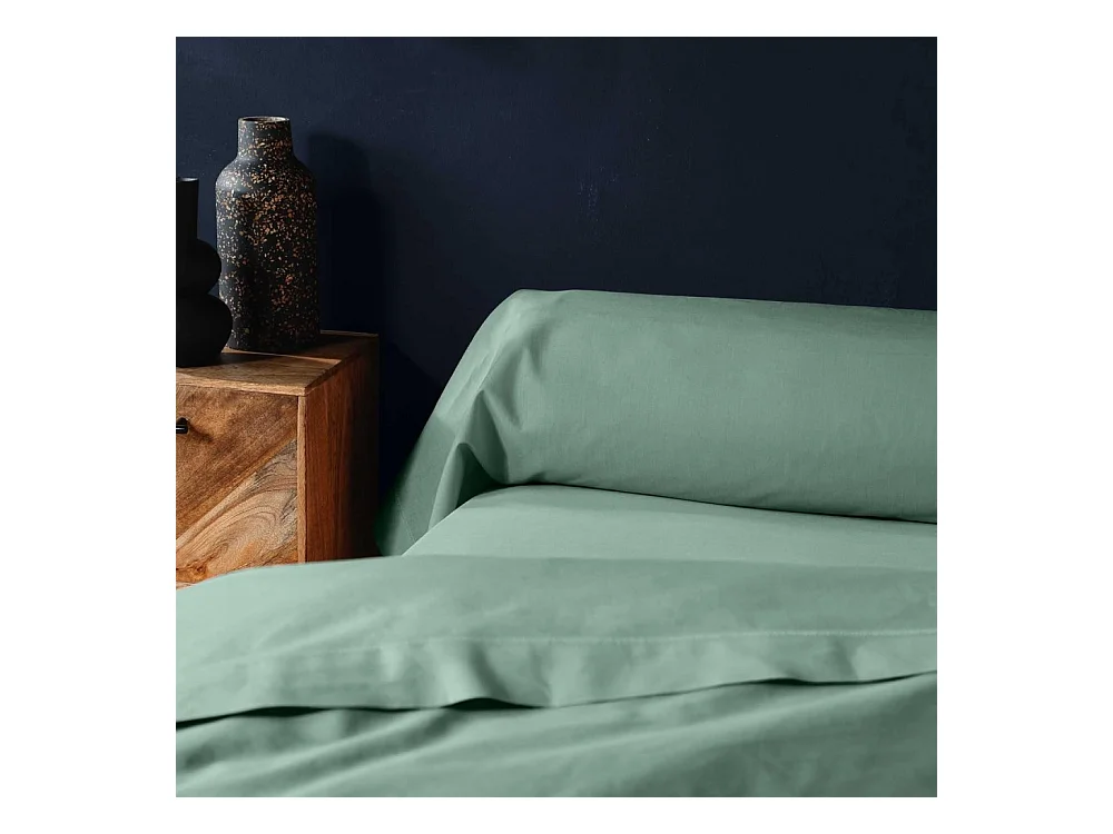 Drap housse uni en coton 57 fils eucalyptus 160x200cm