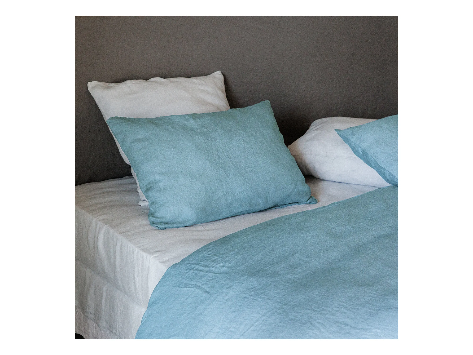 Taie de traversin uni 195X43 cm 100% lin lavé SONATE bleu Topaze