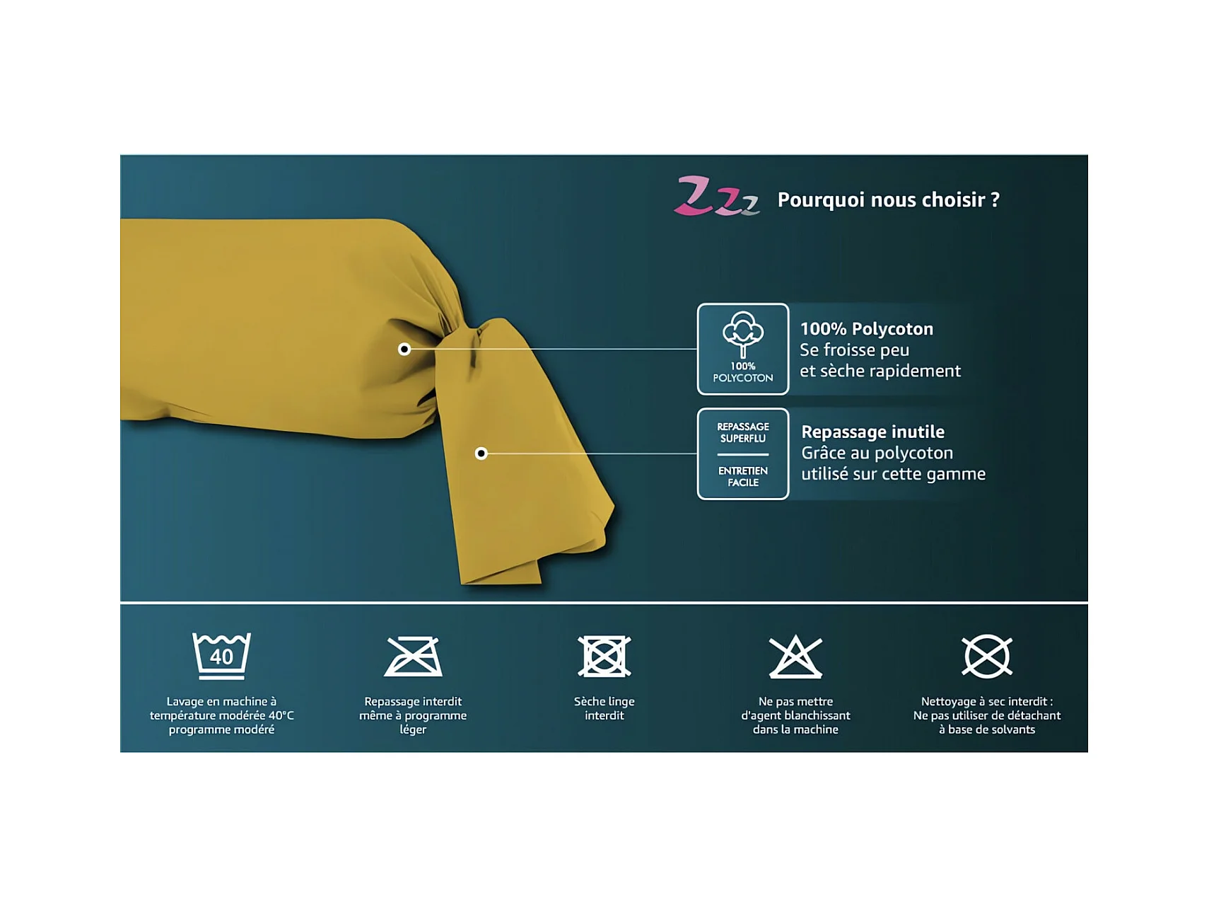 Taie de traversin uni 85x185 cm ZZZ blanc