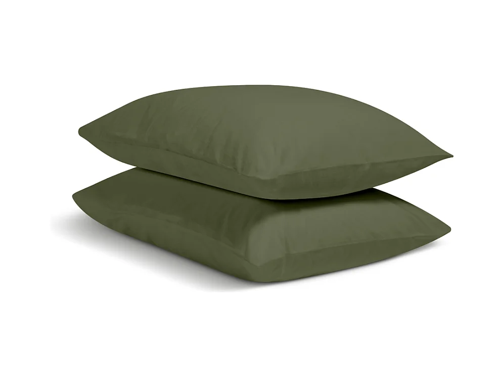 Lot de 2 Taies d'oreiller 100% Percale de coton - Kaki - 50x75cm