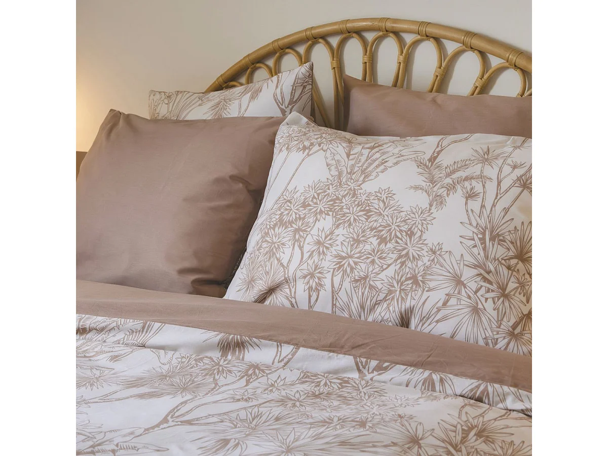 Taie d'oreiller 50x70cm coton imprimé feuillage blanc et sable - JAVEN