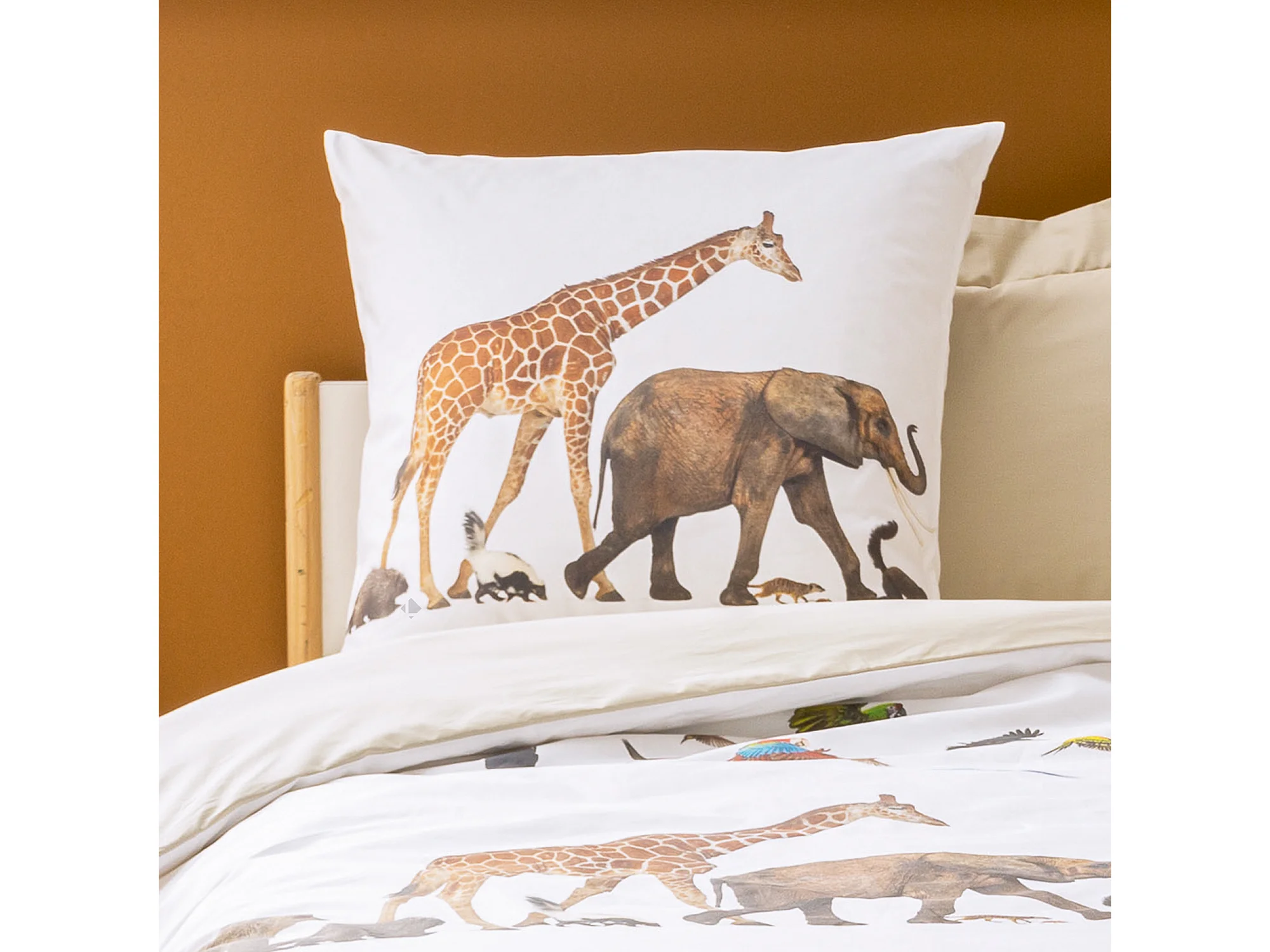 Taie d'oreiller imprimée 65x65 cm en 100% percale de coton NOÉ blanc
