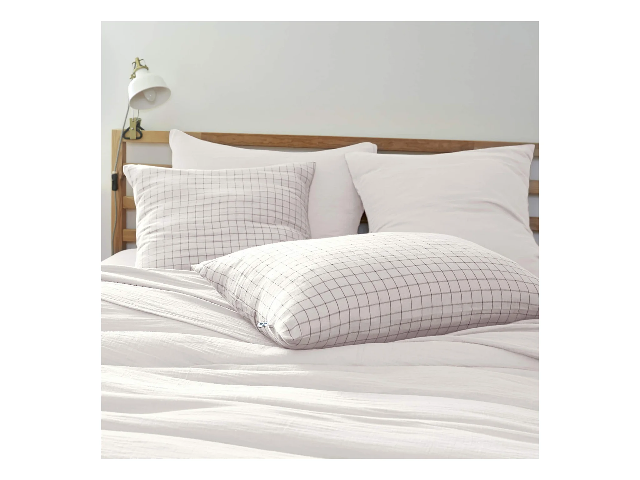 Taie d'oreiller à carreaux double gaze de coton blanc 50x70